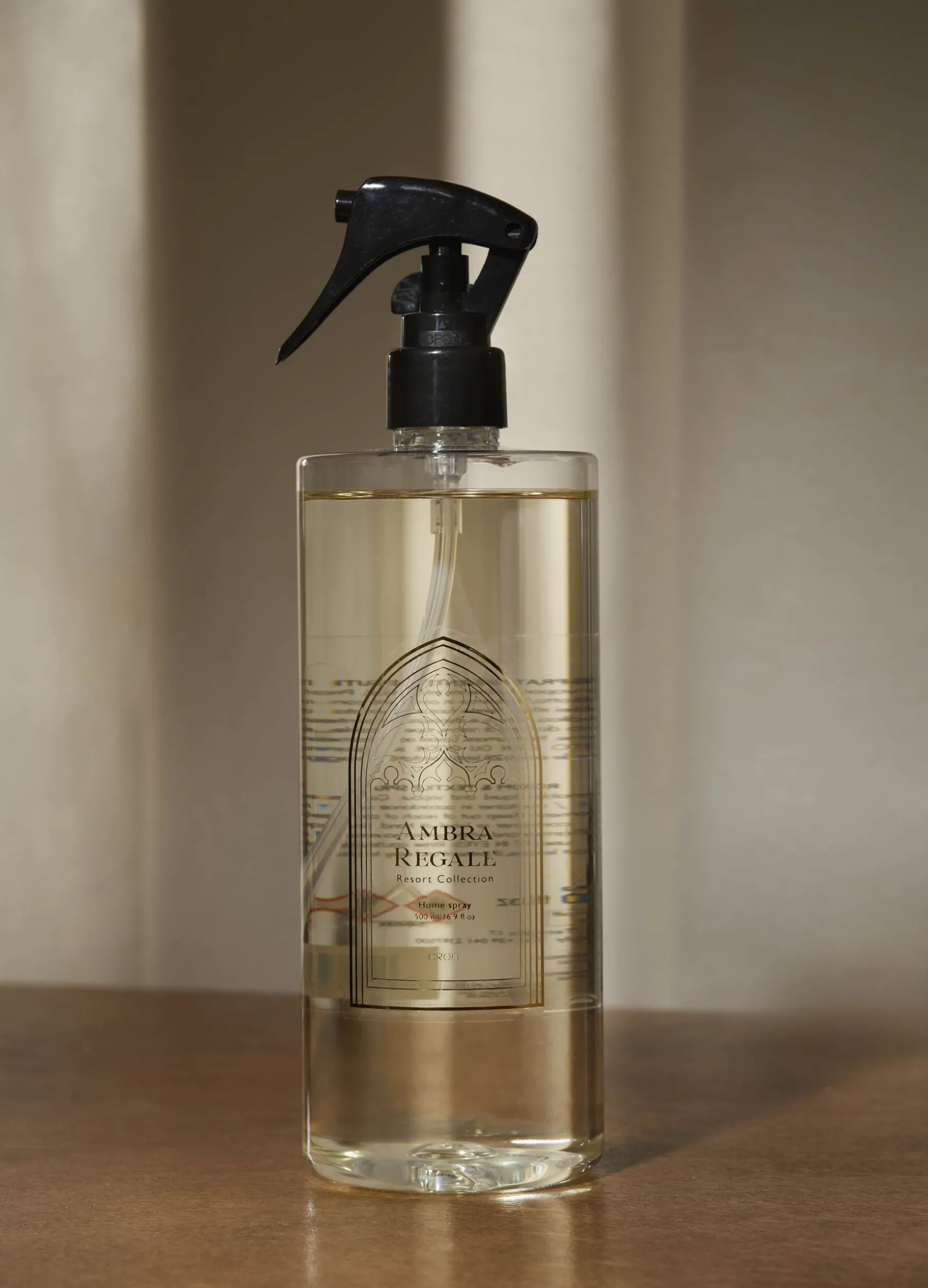 Pratico profumatore per ambienti in bottiglia di plastica trasparente con diffusore spray, completato da decorazione sul davanti. L’aroma di ambra regale evoca sensazioni di lusso e opulenza. Altezza: 23 cm; capacità: 500 mL.