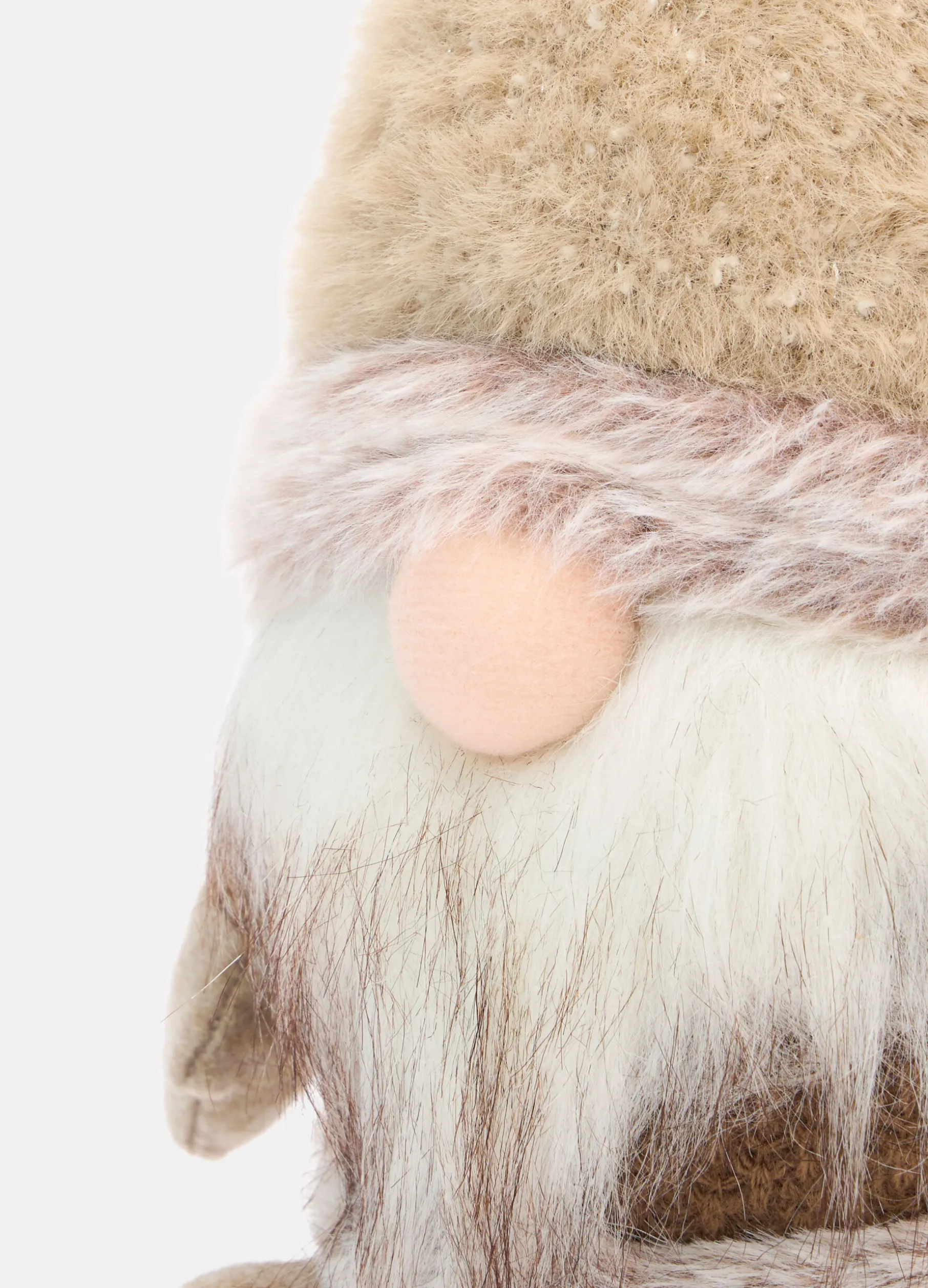 Allegro pupazzo a forma di gnomo, realizzato in materiale morbido e vaporoso e arricchito da dettagli di ispirazione invernale e festiva come il cappello a punta e la lunga barba folta. Dimensioni: 11 x 14 x 25 cm.