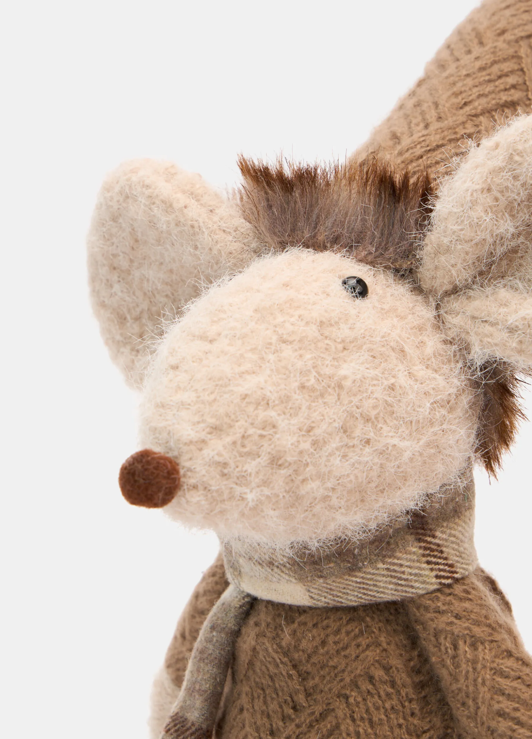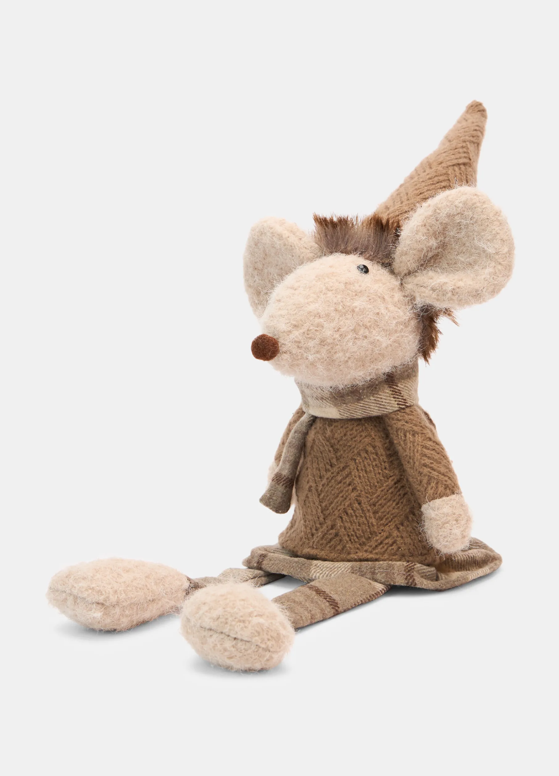 Allegro pupazzo a forma di topino, realizzato in materiale morbido e vaporoso e arricchito da dettagli di ispirazione invernale e festiva come il cappello a punta e il maglione a trecce. Dimensioni: 16 x 20 x 60 cm.