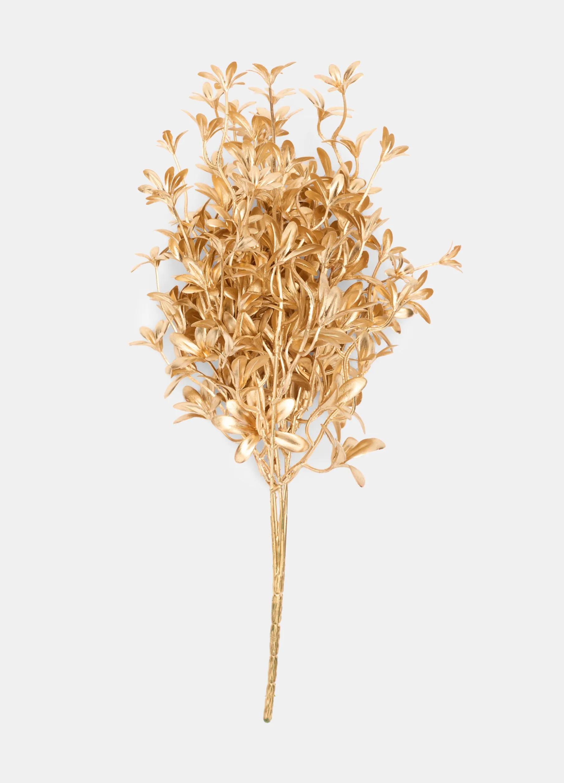 Elegante decorazione natalizia, perfetta per illuminare l’atmosfera domestica: il lungo ramo e le numerose foglioline sono rivestiti di una scintillante vernice dorata. Dimensioni: 14 x 40 x 9 cm.