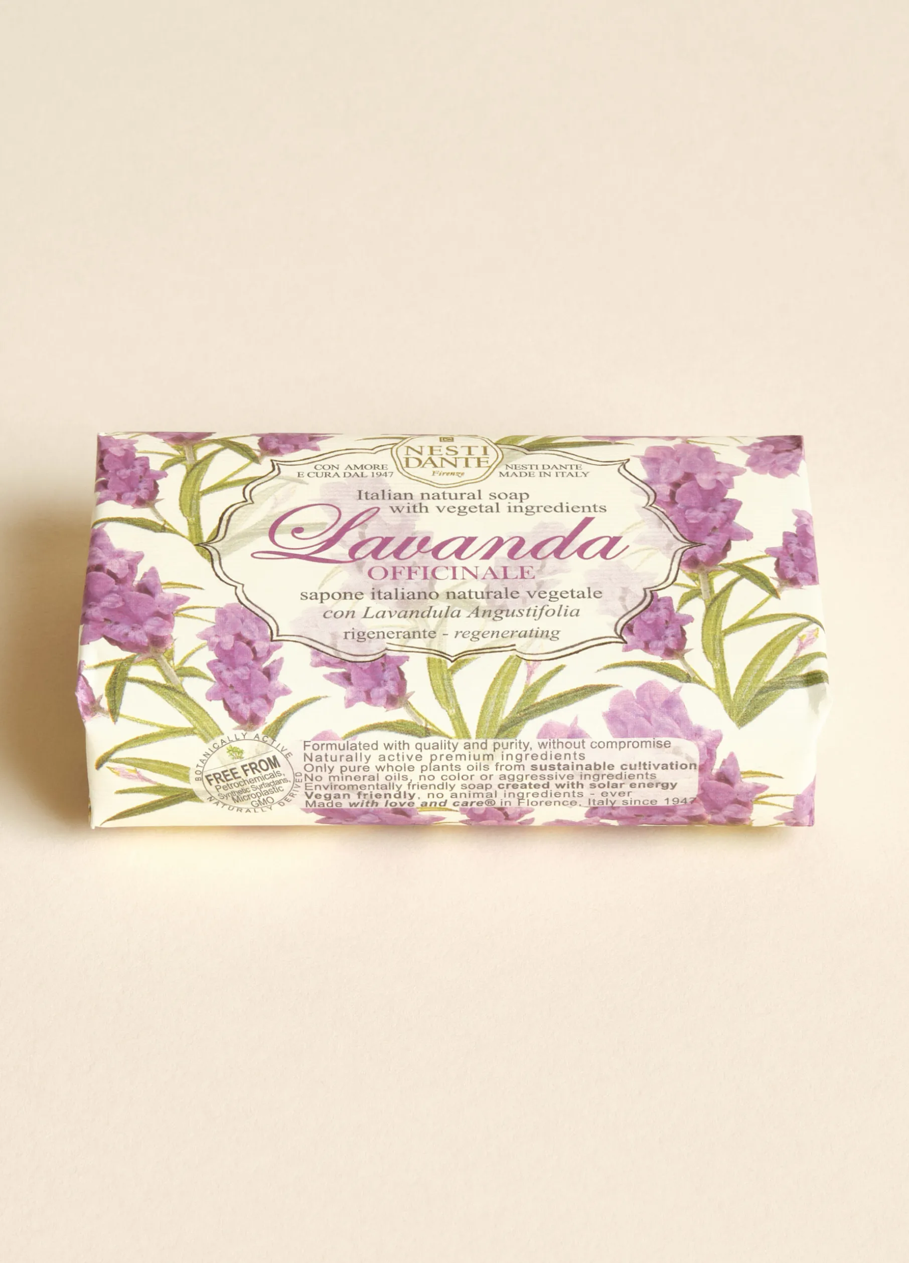 Sapone naturale vegetale con Lavanda Agustifolia rigenerante. Made in Italy.
