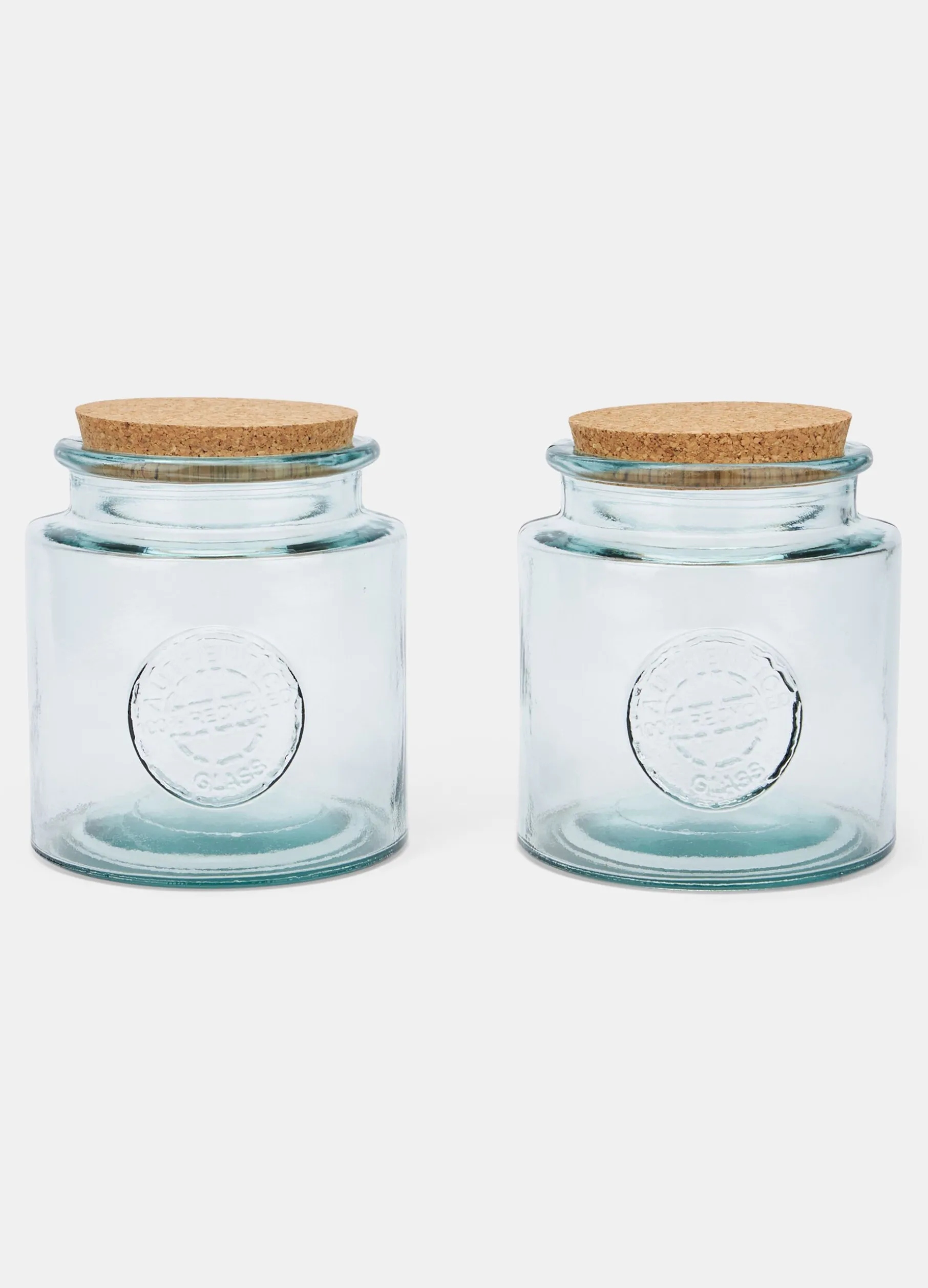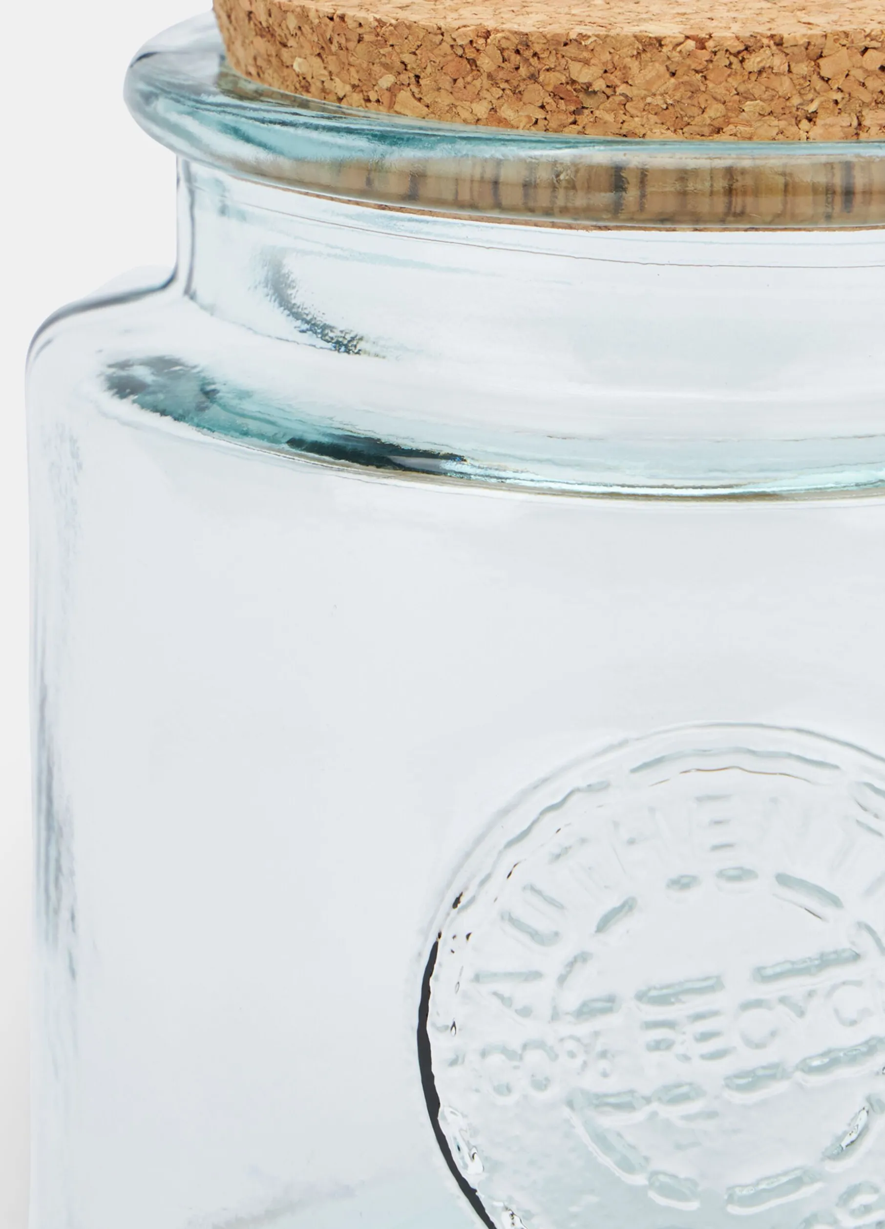 Set 2 barattoli in vetro riciclato con tappo in sughero. Made in Spagna. Capacità 1,5l.