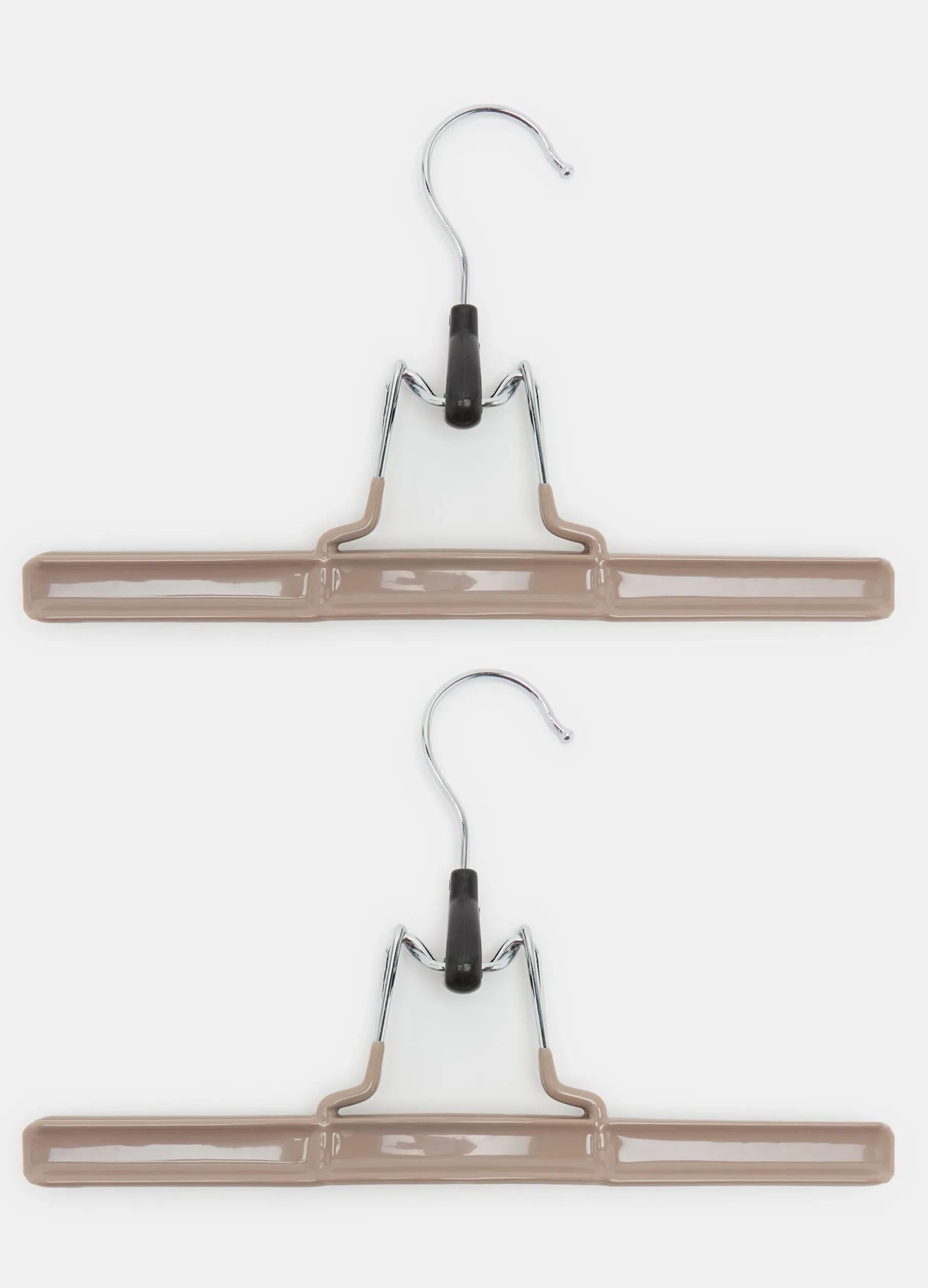 Set 2 grucce porta pantaloni in acciaio. Dimensioni 36×16 cm.