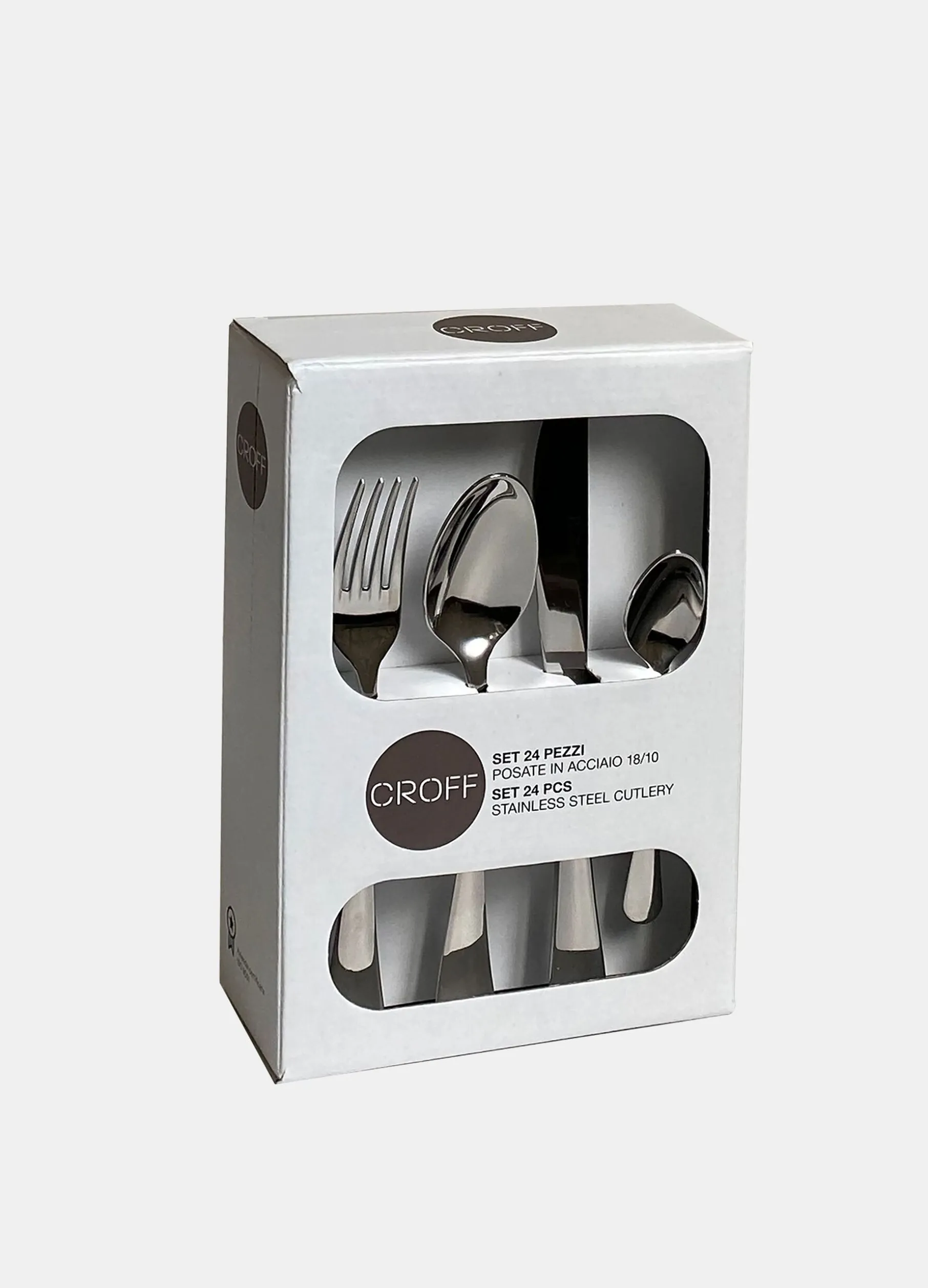 Set 24 pezzi posate in acciaio satinato composto da 6 forchette, 6 cucchiai, 6 coltelli, 6 cucchiaini. Made in Italy.