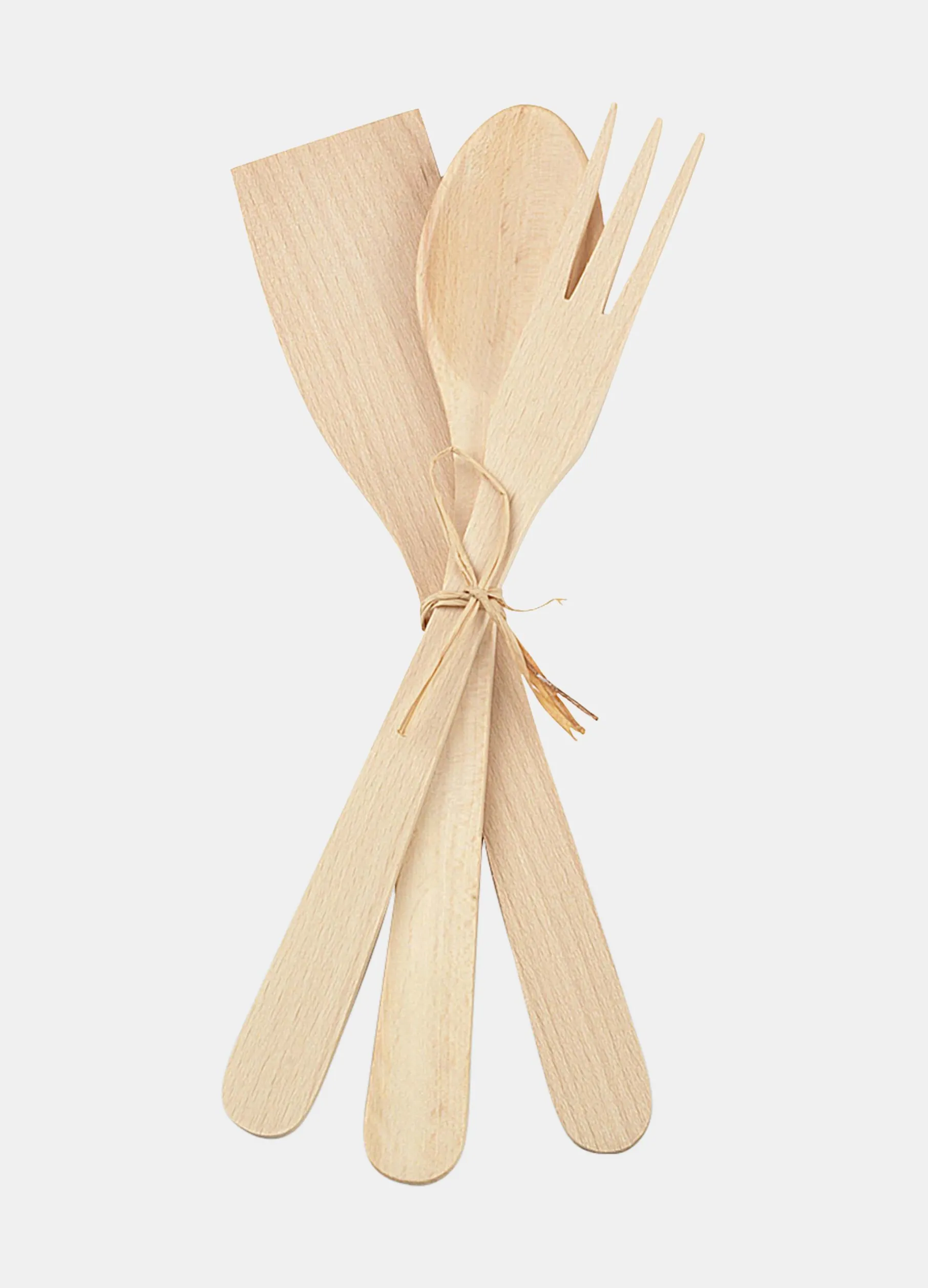 Set spatola, mestolo e forchetta in legno