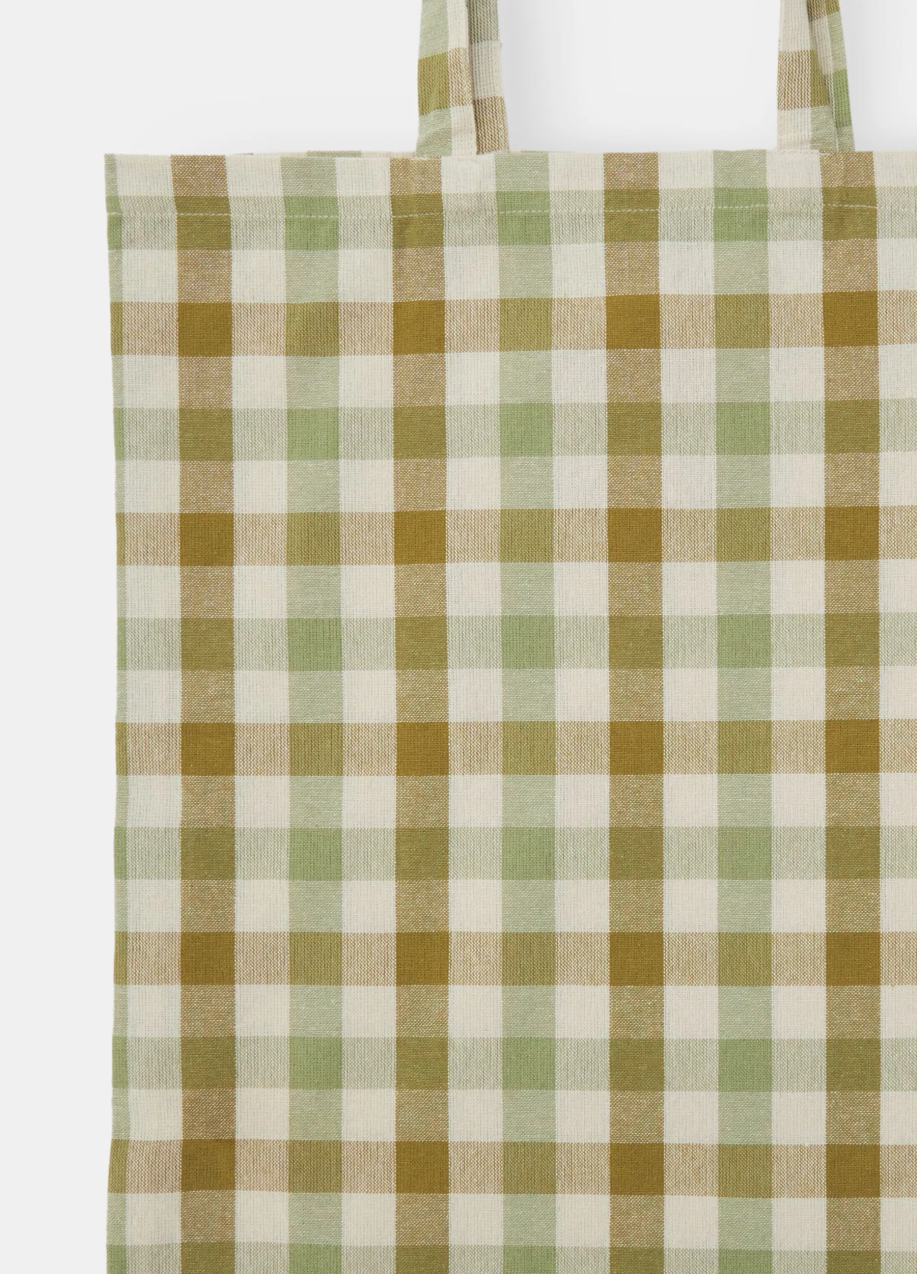 Shopping bag in puro cotone biologico con motivo a quadri. Dimensioni 49x42cm.