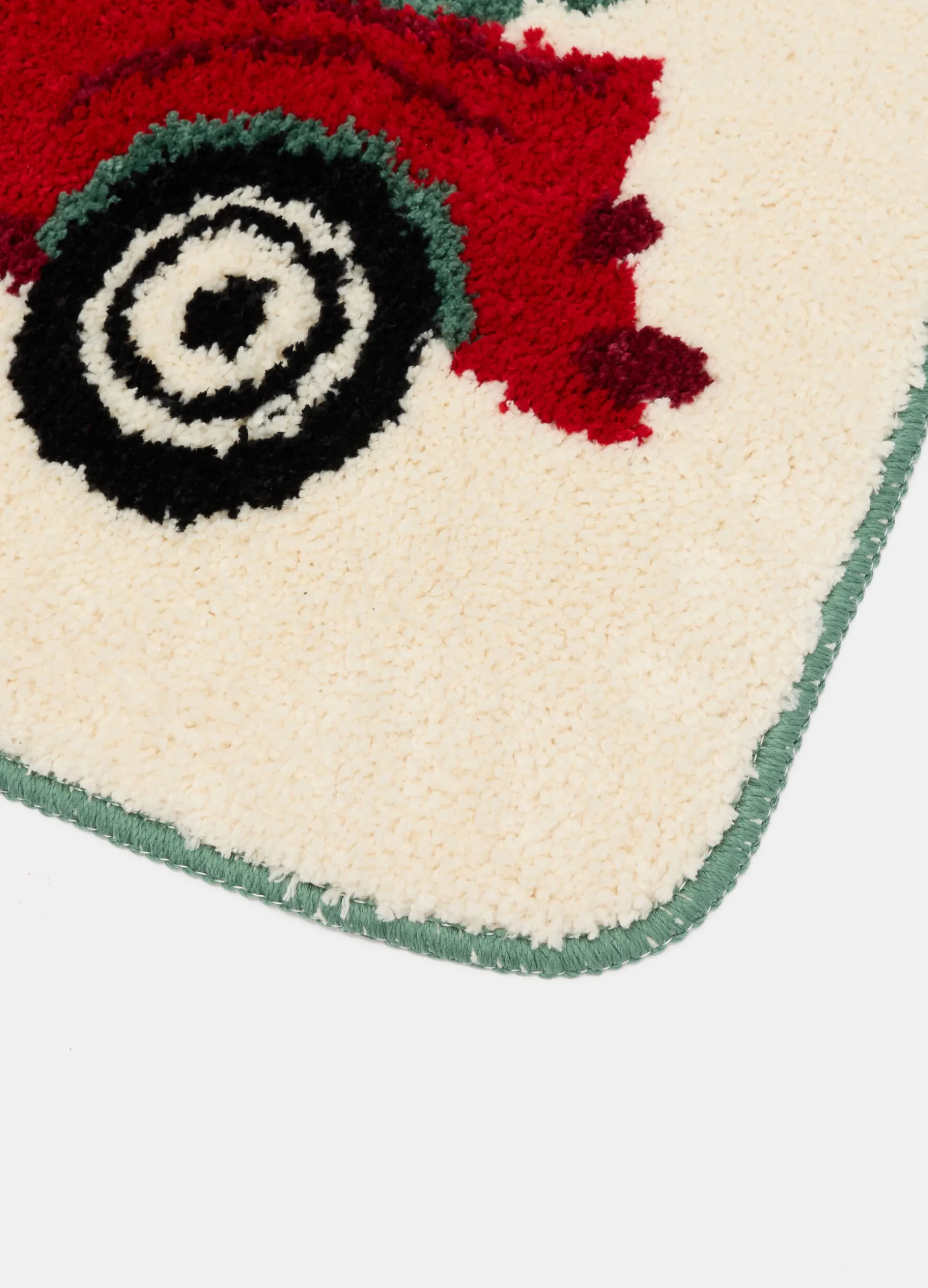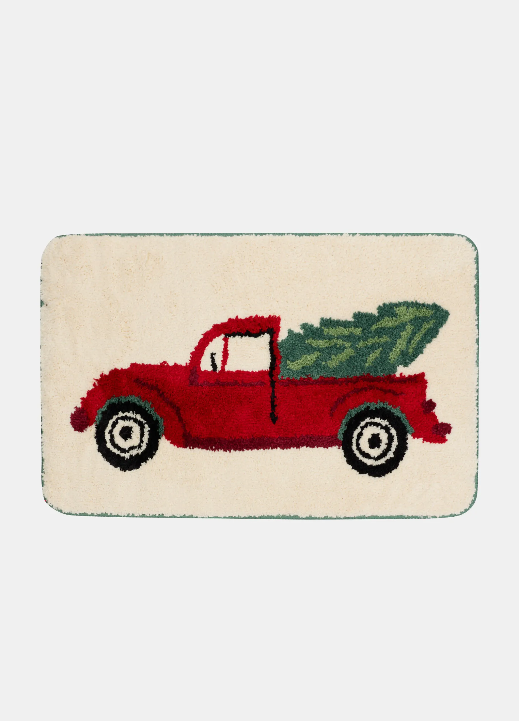 Tappetino rettangolare per il bagno, perfetto sotto il lavandino o davanti il box doccia, in morbido filato bianco crema, arricchito da un disegno vivace che richiama le atmosfere allegre del Natale. Dimensioni: 80 x 50 cm.