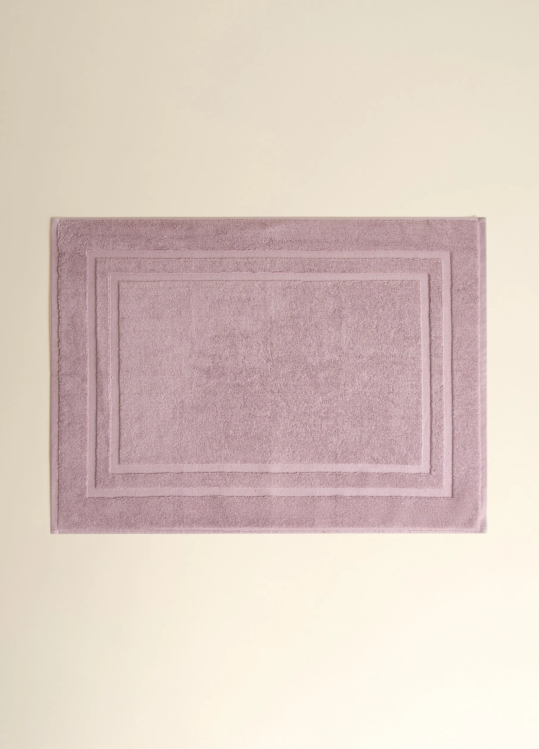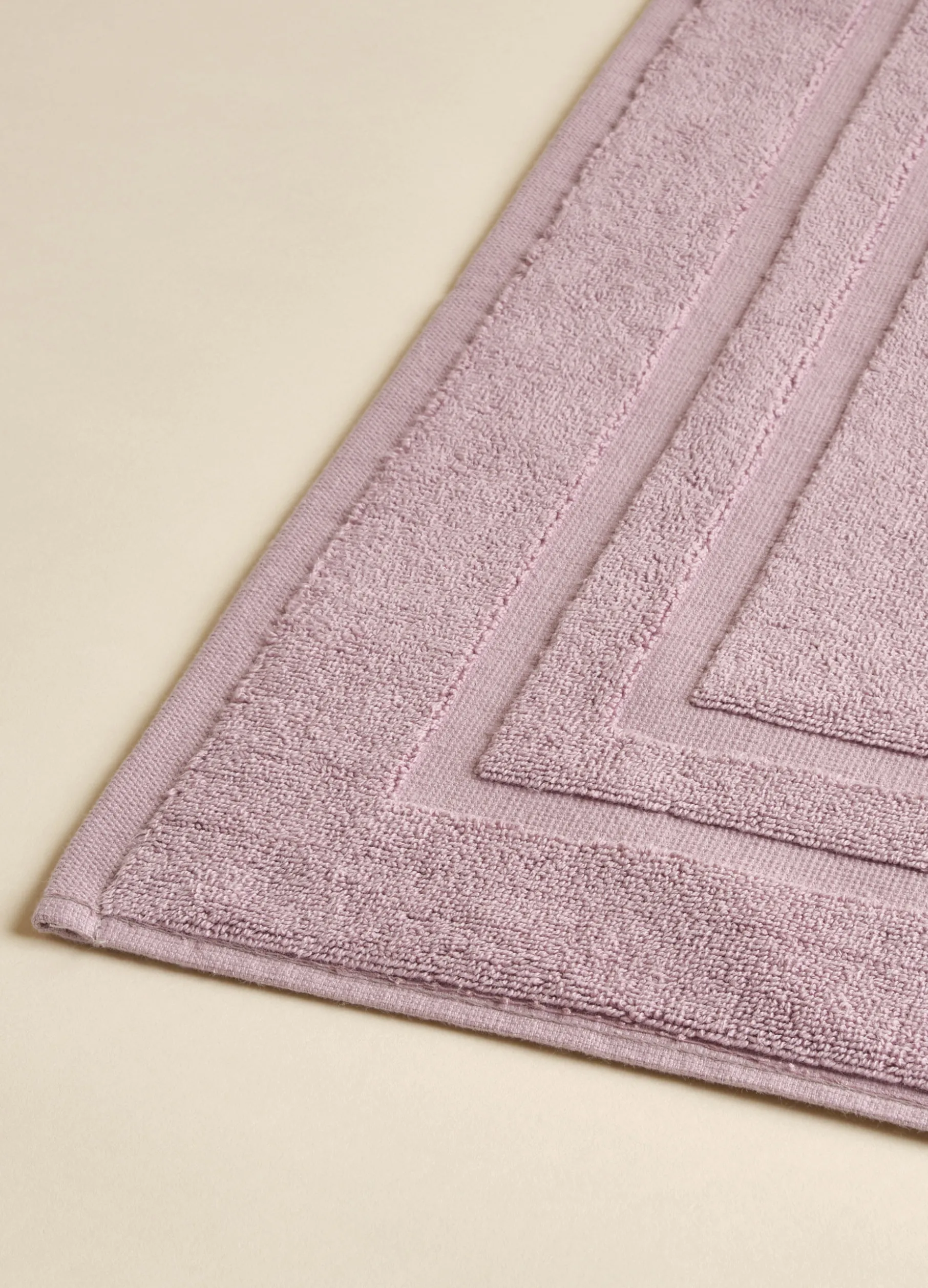 Tappetino rettangolare per il bagno realizzato in spugna di puro cotone, soffice e funzionale, in una delicata tonalità di viola. Dimensioni: 70 x 50 cm.