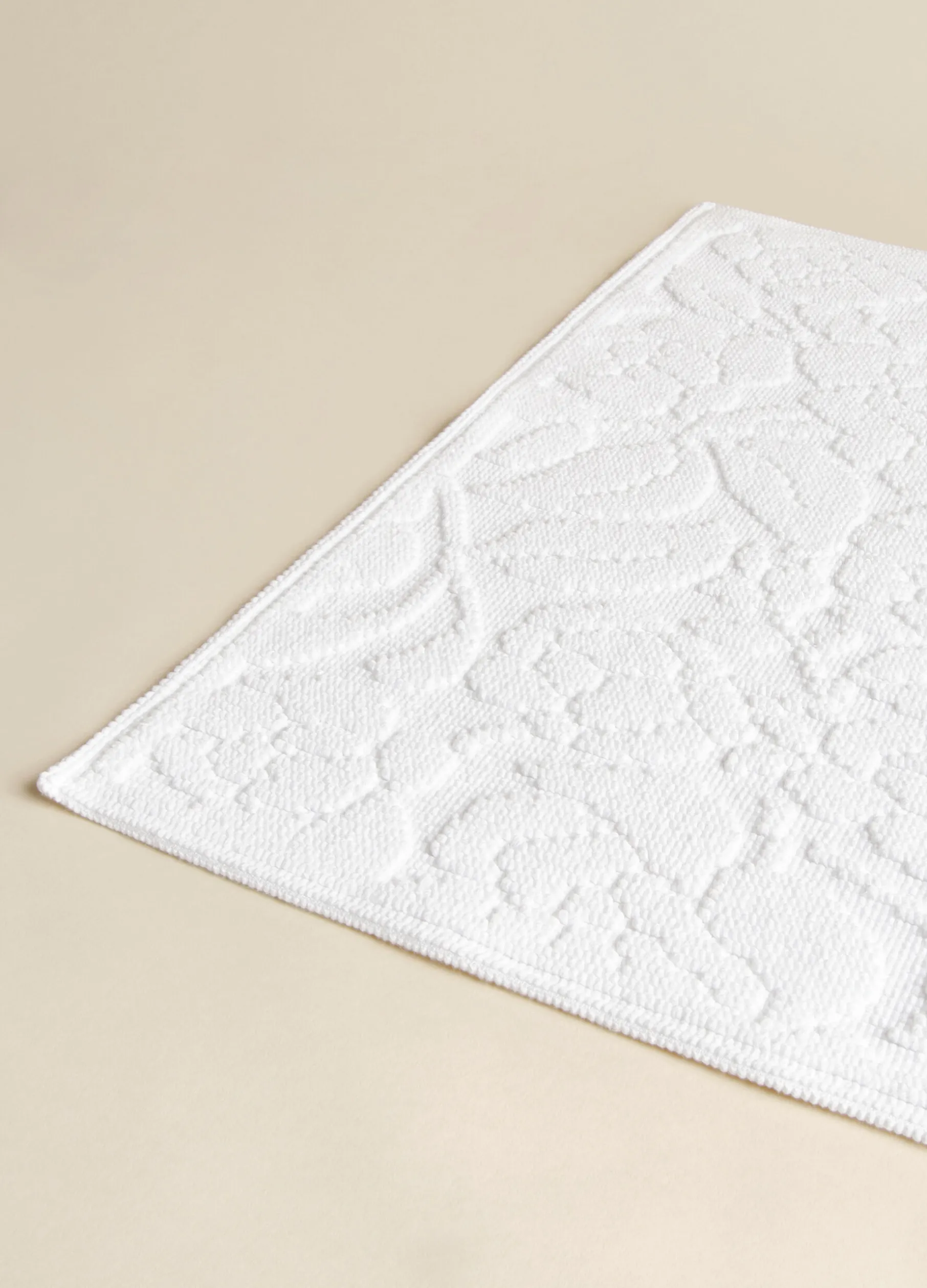 Tappeto in puro cotone con lavorazione jacquard. Made in Portugal. Dimensioni 90×60 cm.