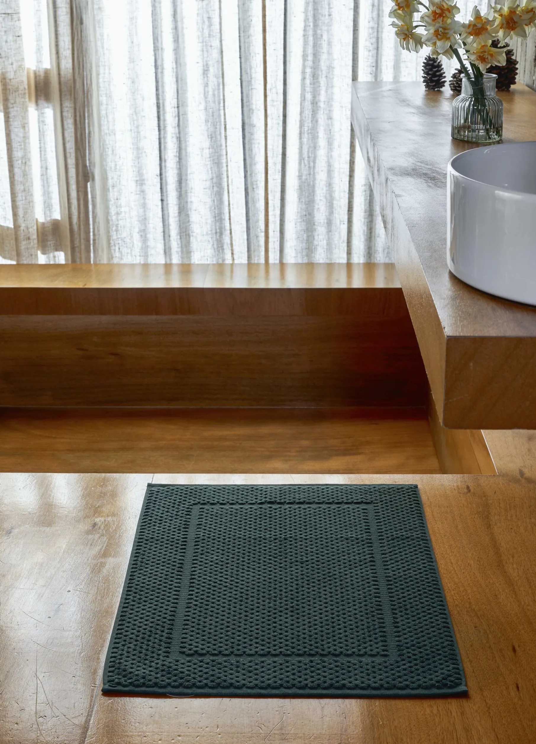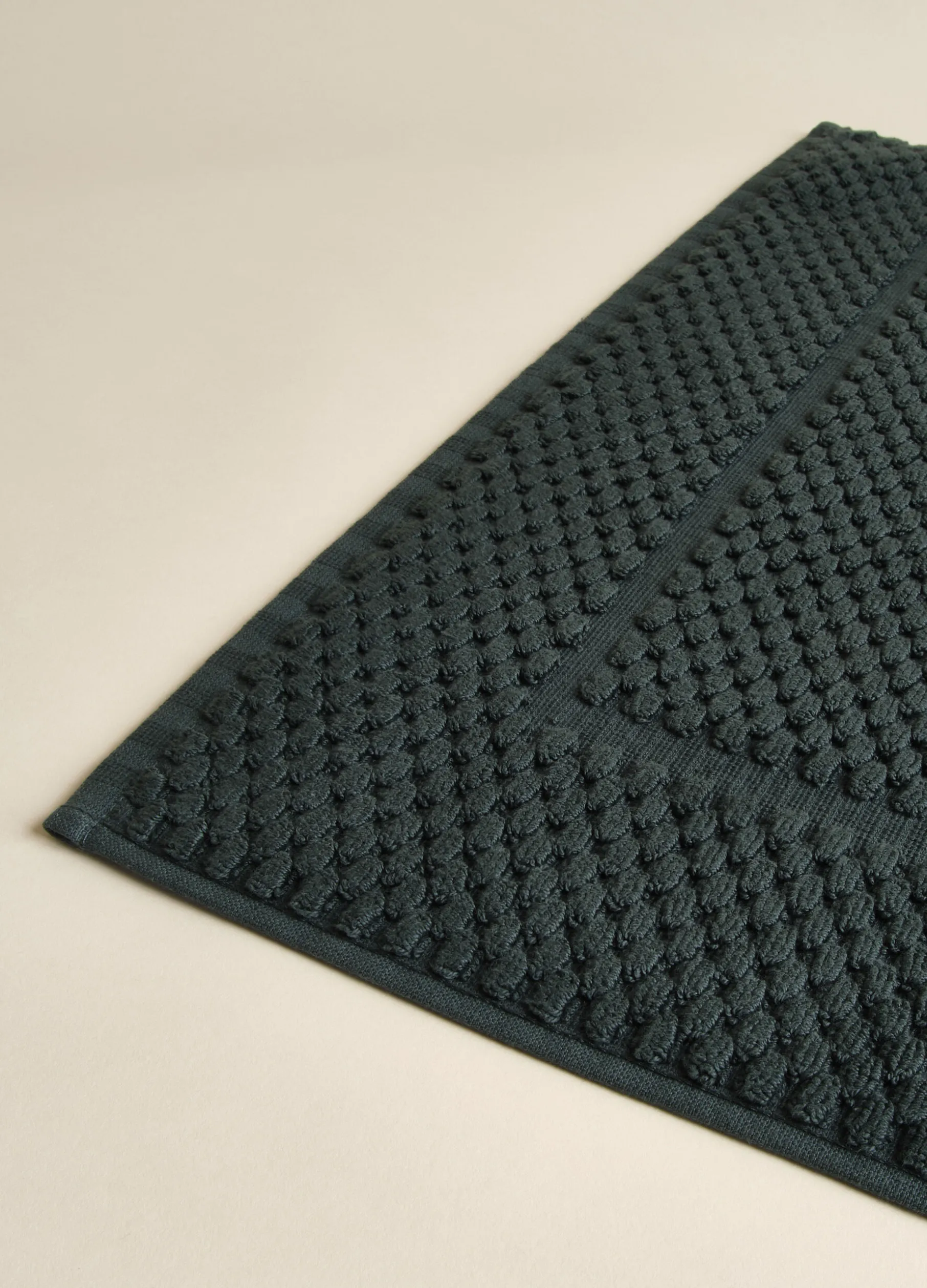 Tappeto in spugna di puro cotone con lavorazione jacquard. Dimensioni 70×50 cm.