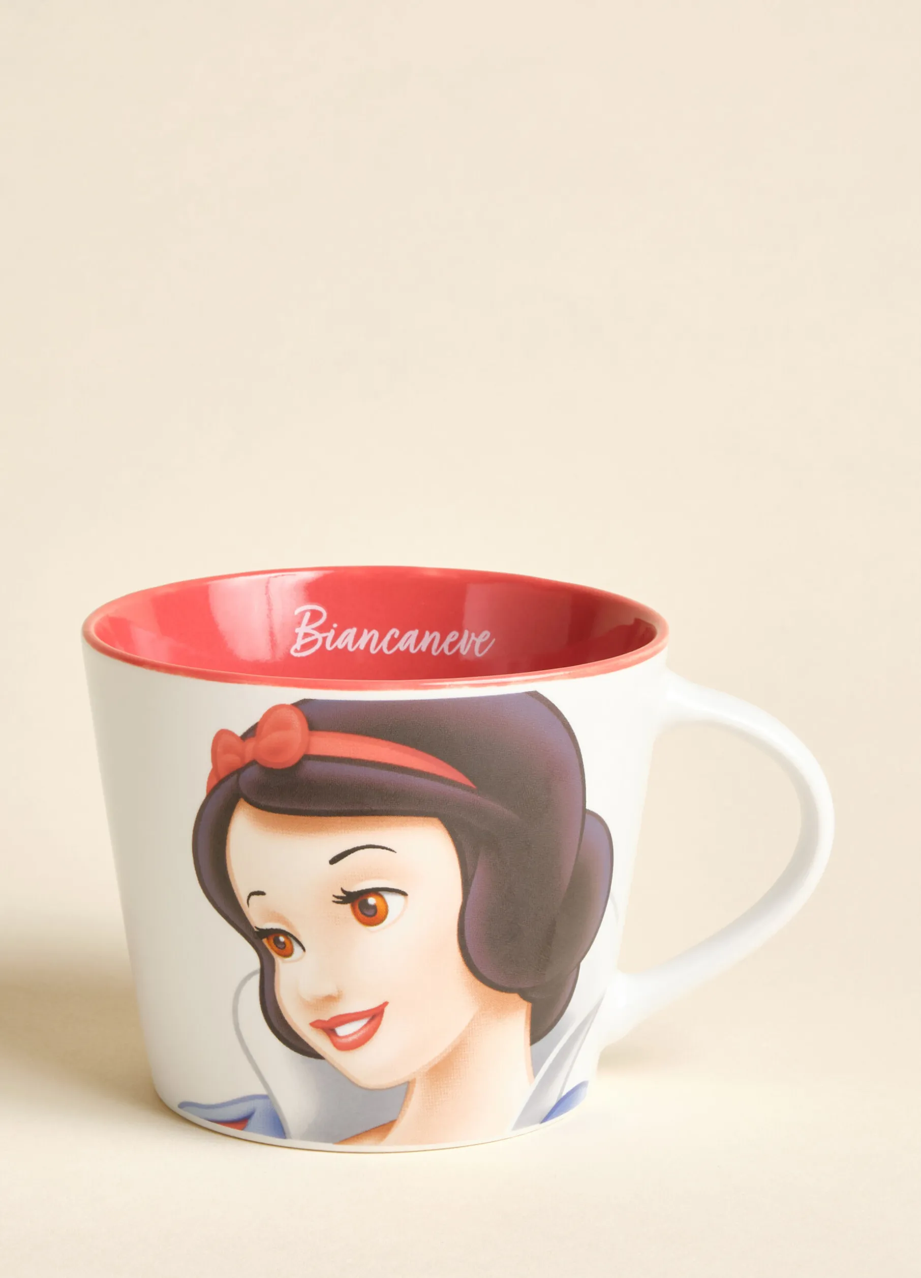 Tazza da tè extra large completa di manico, realizzata in ceramica dipinta e arricchita da una decorazione ispirata al mondo dei cartoni: la protagonista è la principessa Biancaneve.