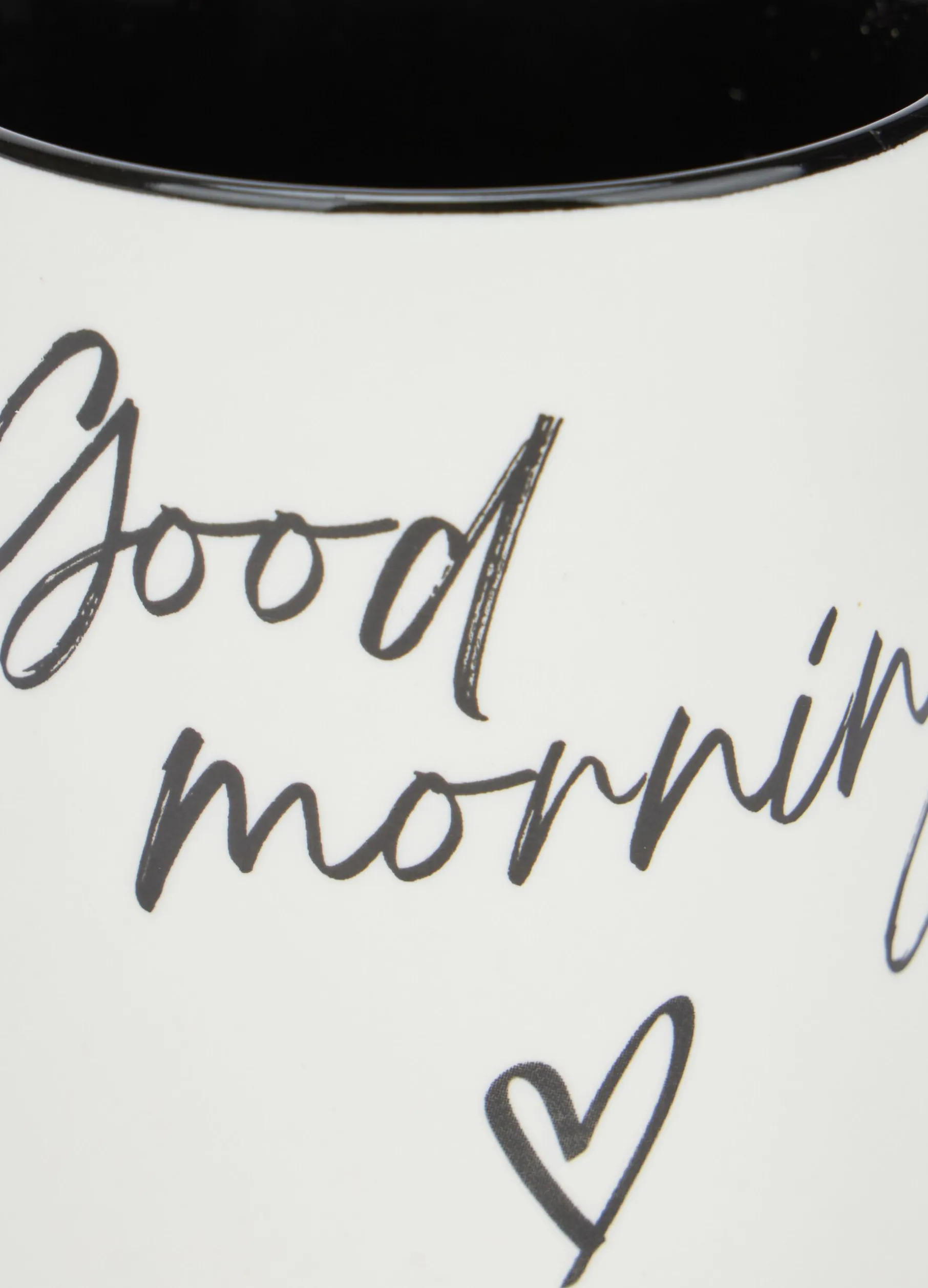 Tazza in porcellana con manico e stampa. Interno con colore a contrasto. Altezza 10,5cm.