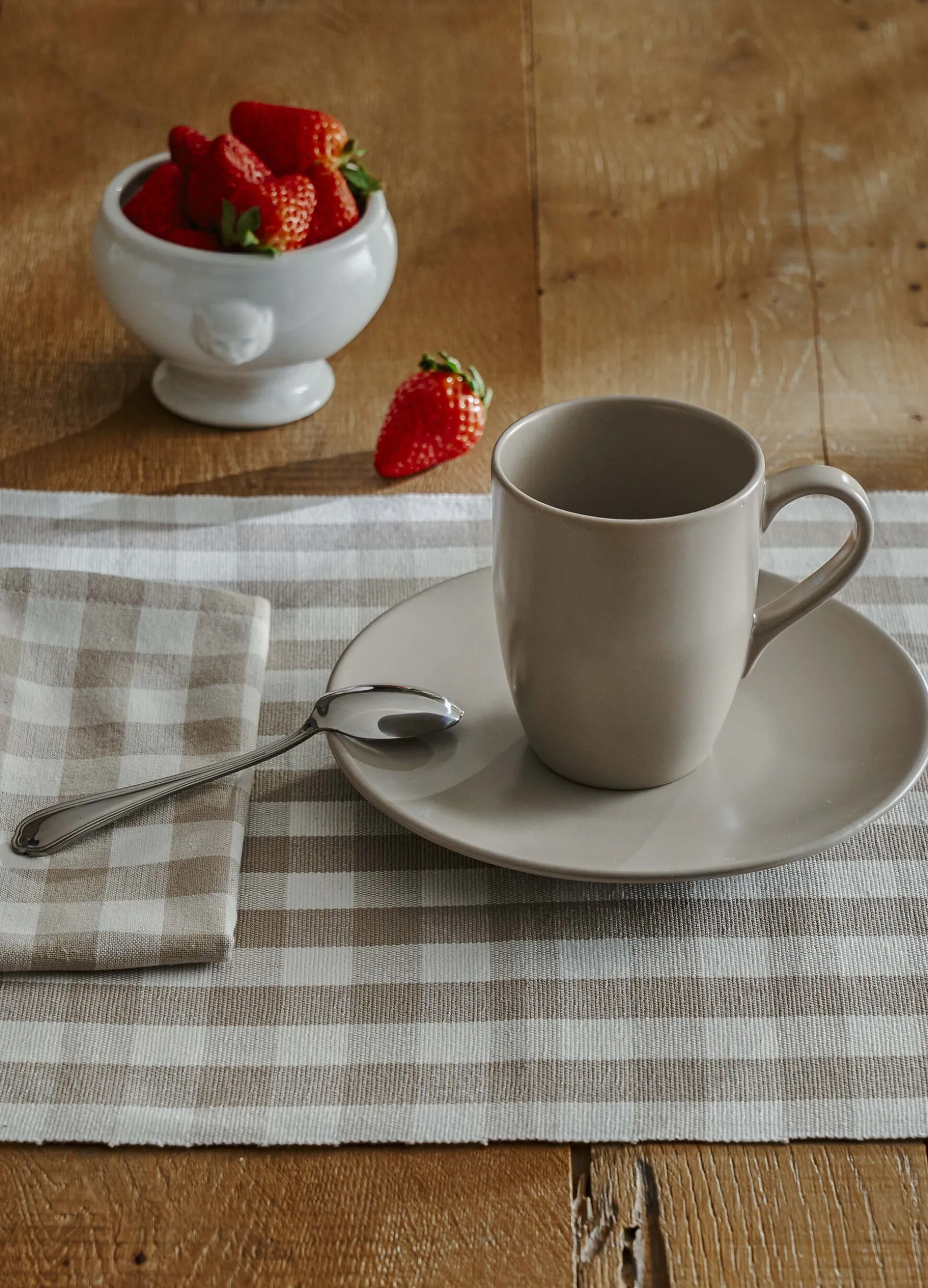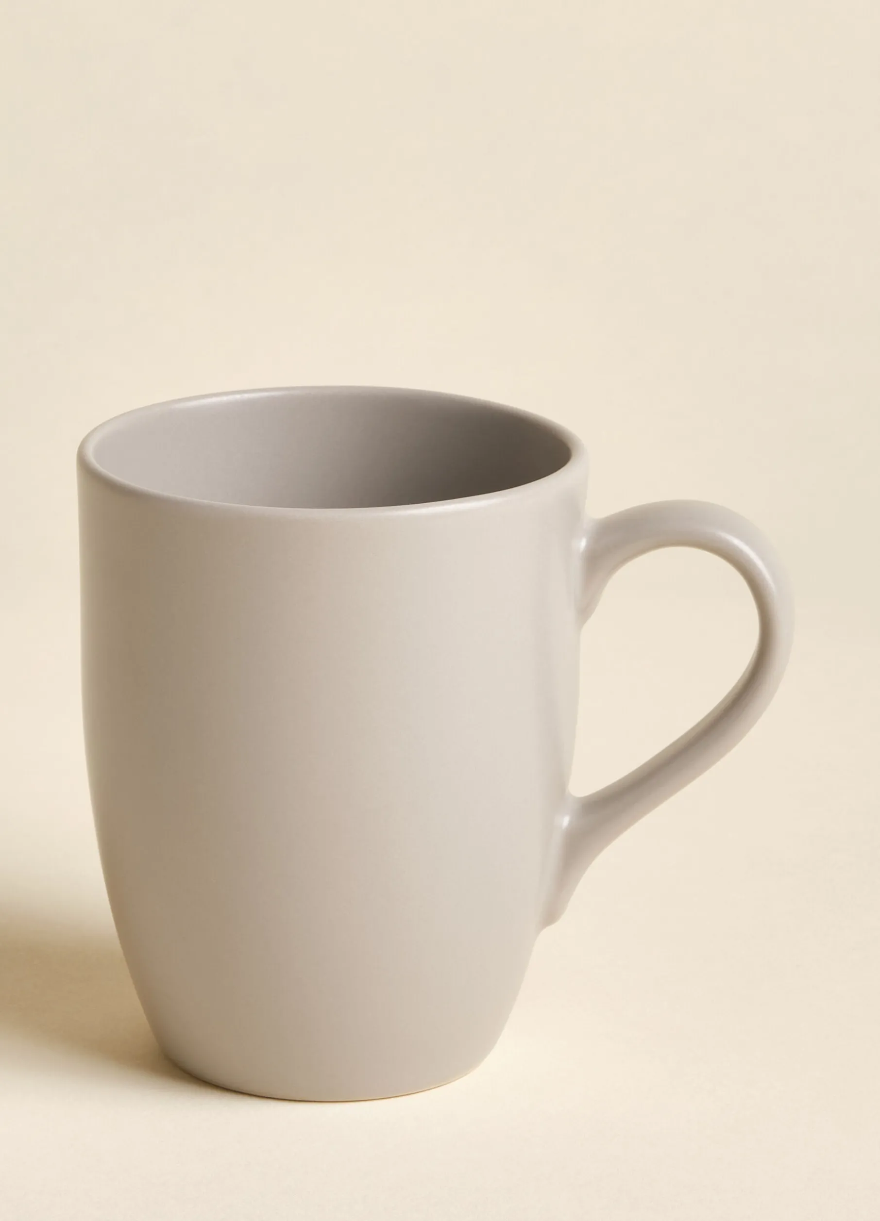 Tazza per colazione in gres con manico, tinta unita. Altezza 10,5 cm.