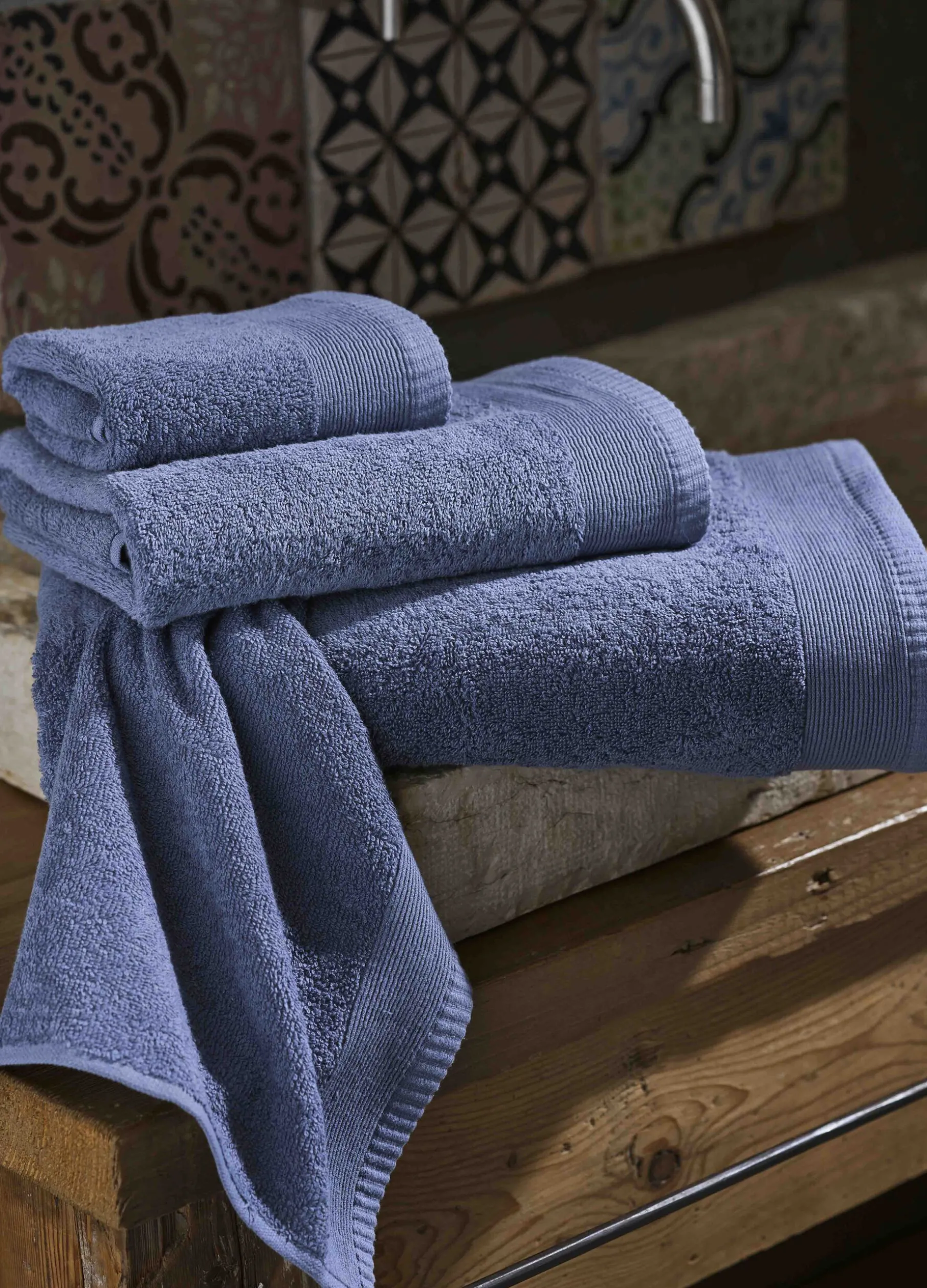 Telo doccia in puro cotone 520 gsm con motivo a costine sul bordo. Dimensioni 150×100 cm.