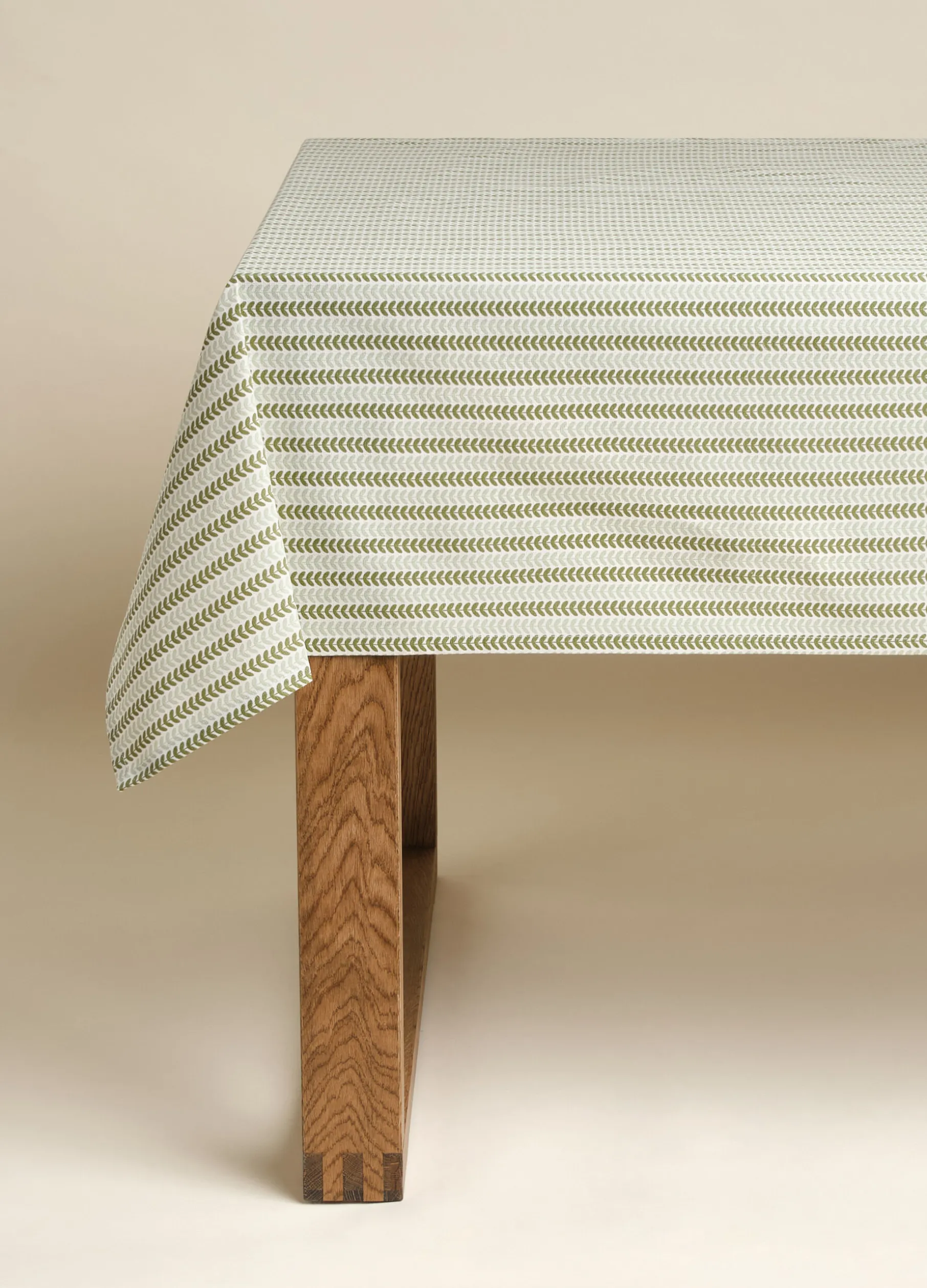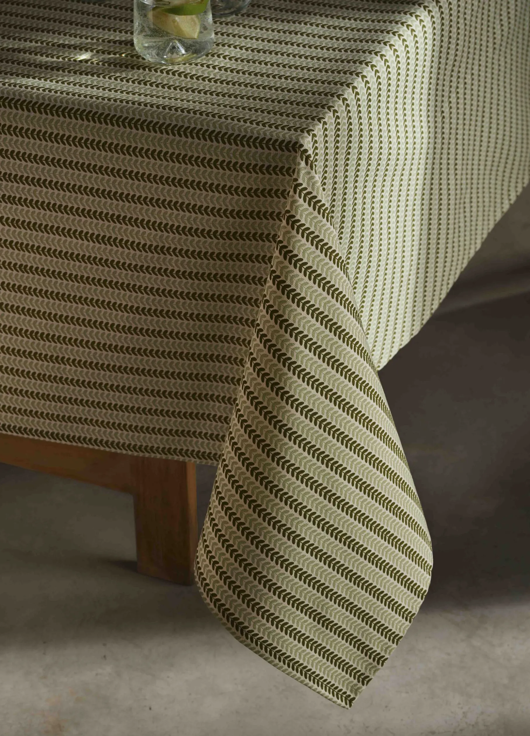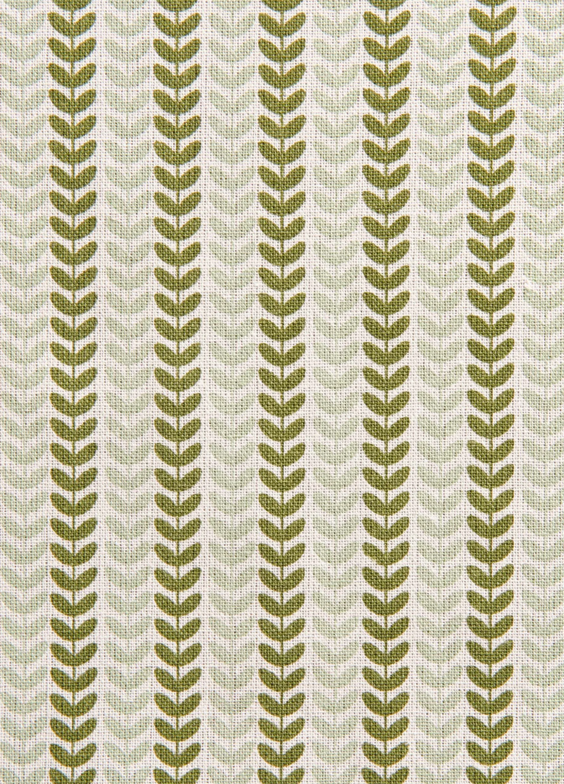 Tovaglia quadrata a 4 posti realizzata in puro cotone e arricchita da un delicato motivo all over di ispirazione botanica in due toni di verde. Dimensioni: 140 x 140 cm.