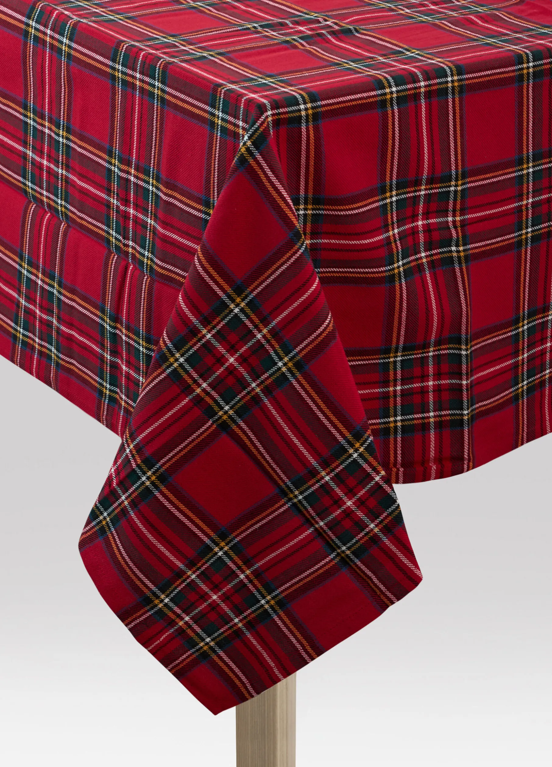 Tovaglia rettangolare da sei posti realizzata in puro cotone rosso, un materiale versatile e resistente. Il look rustico, con motivo stile tartan, si ispira alle atmosfere invernali e allegre delle feste. Dimensioni: 180 x 140 cm.