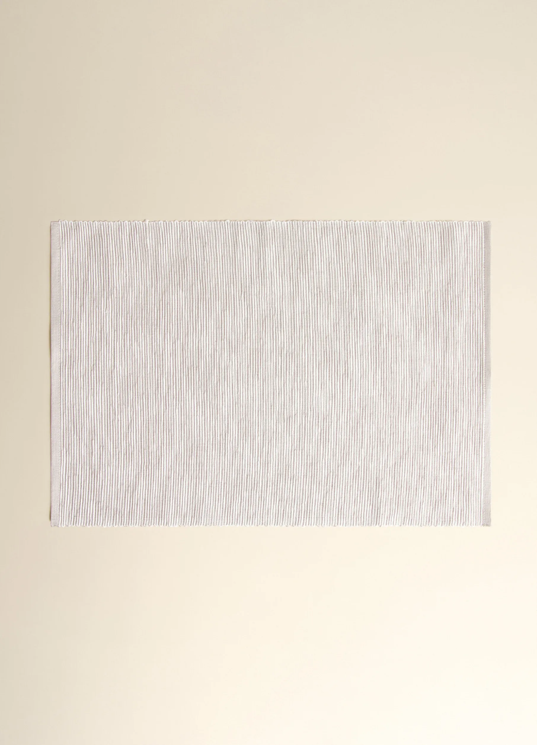 Tovaglietta rettangolare americana, ideale per la colazione, in puro cotone robusto e leggero. La lavorazione a doppia costina bianca e beige con effetto mélange.