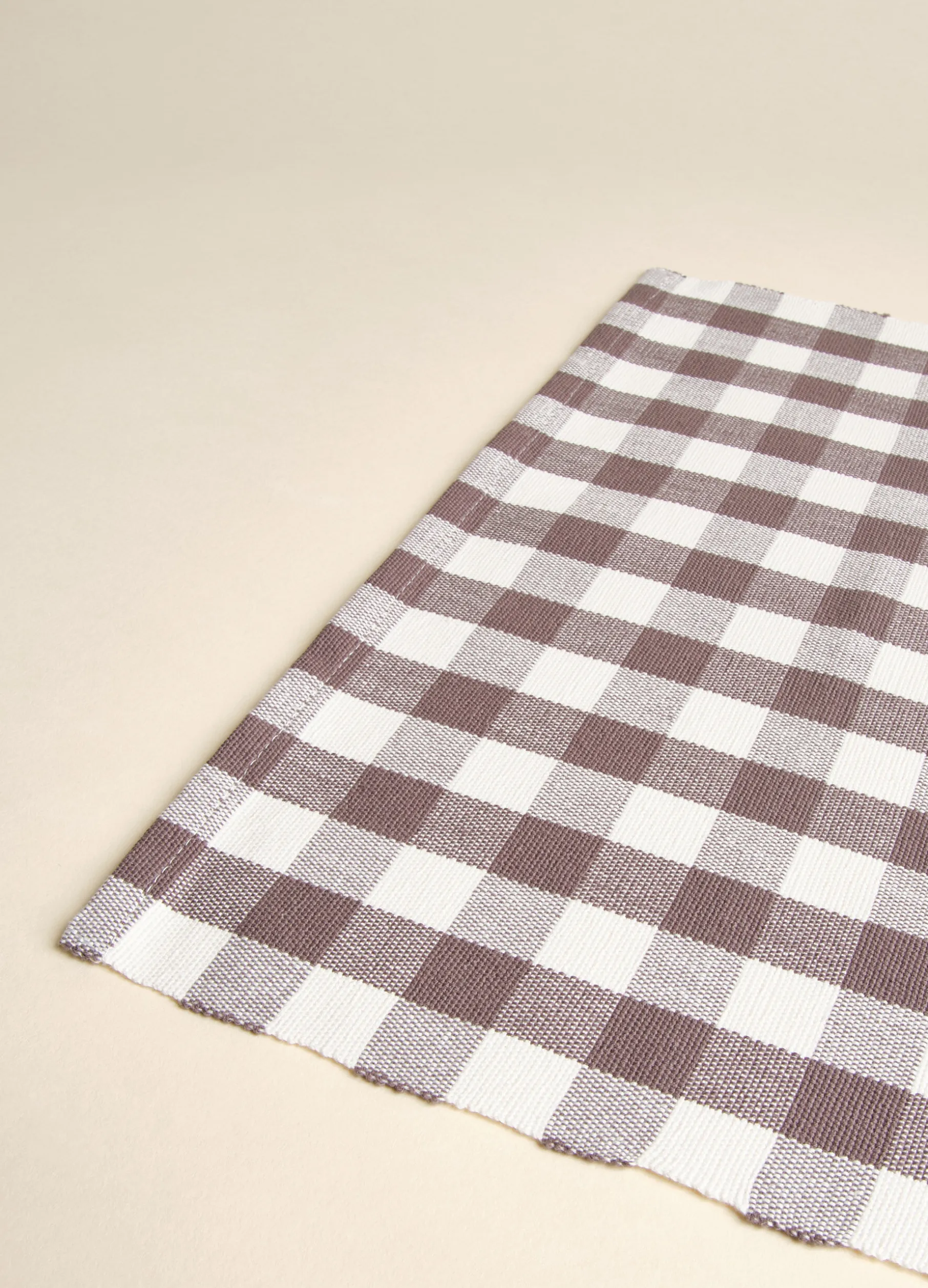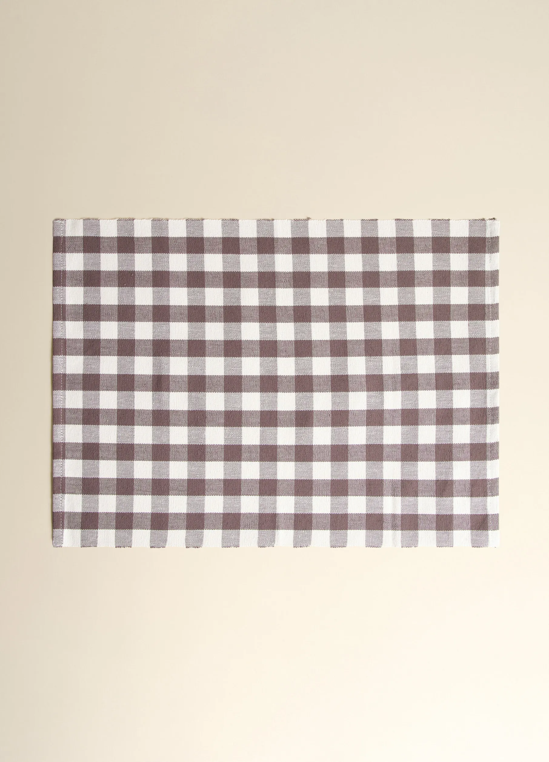 Tovaglietta rettangolare americana in cotone spesso a costine, per renderla più resistente. Arricchita da un motivo a quadretti grigio e bianco.