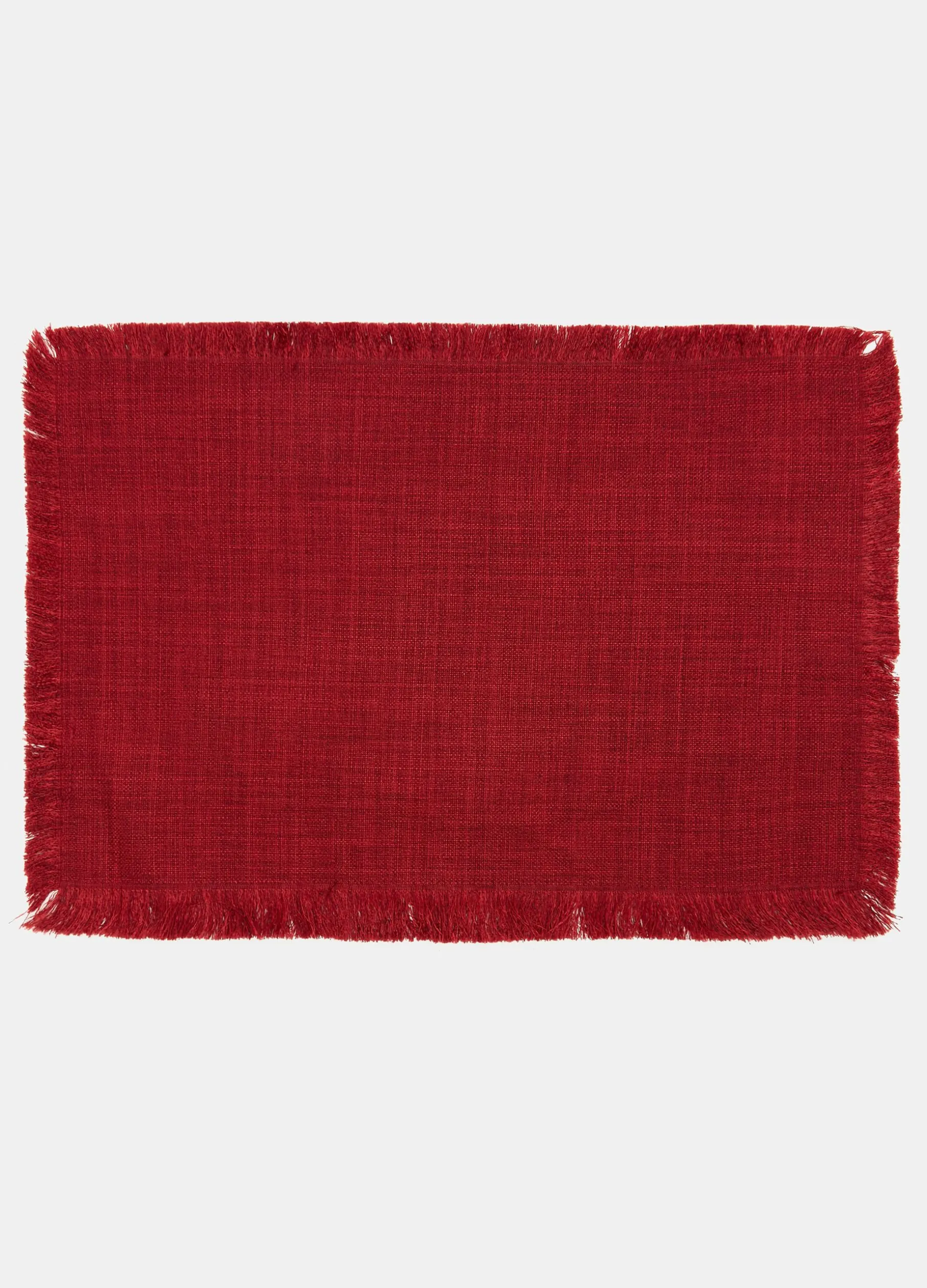 Tovaglietta 45×30 cm effetto lino sfrangiata ai lati. Tinta unita. Forma rettangolare. Tessuto idrorepellente e antimacchia.