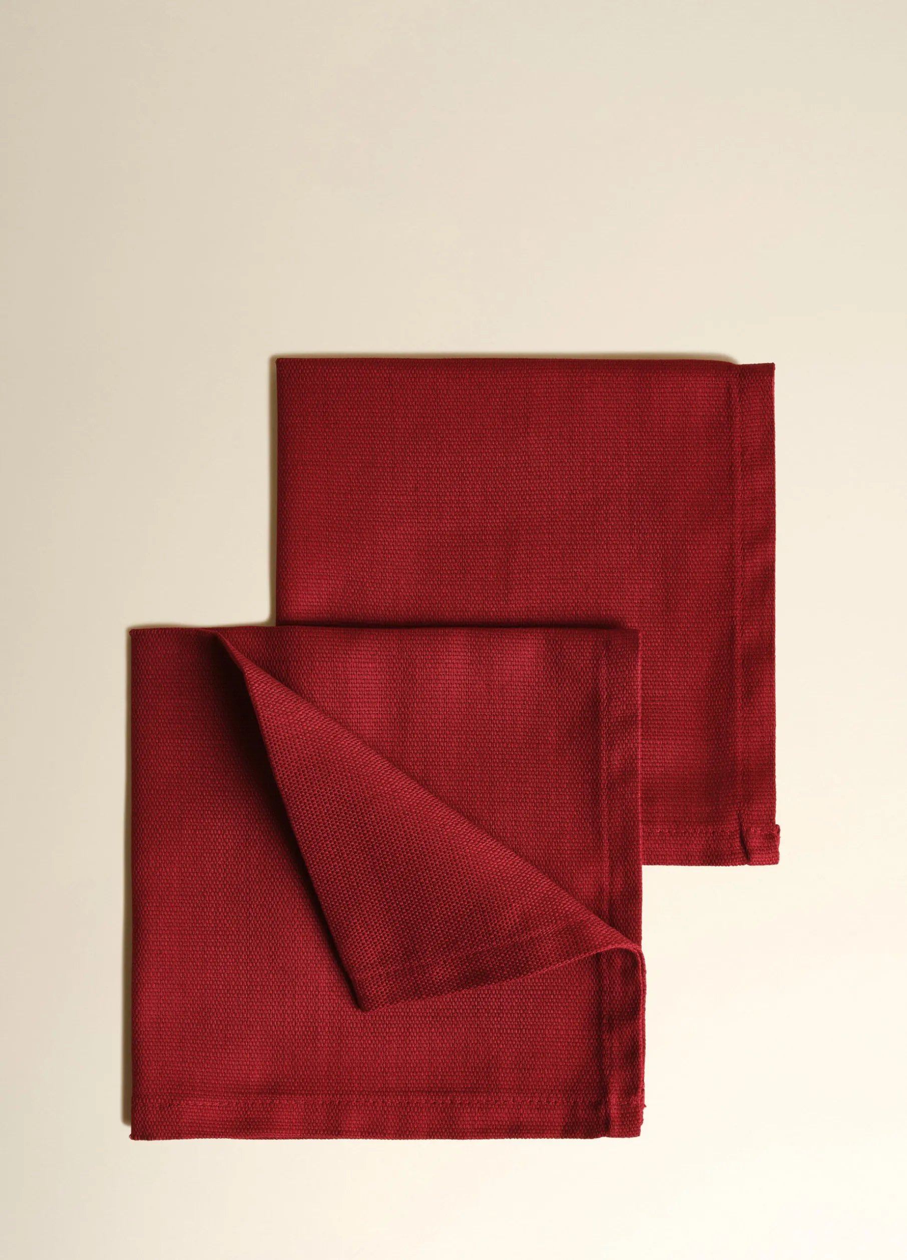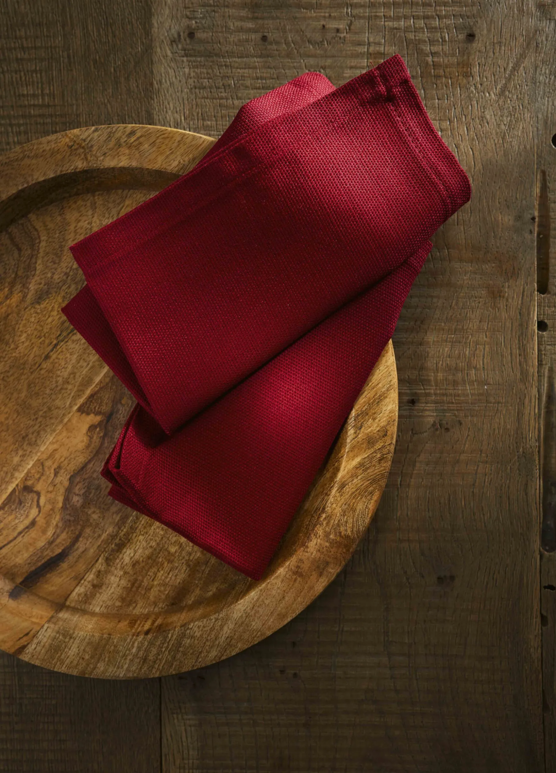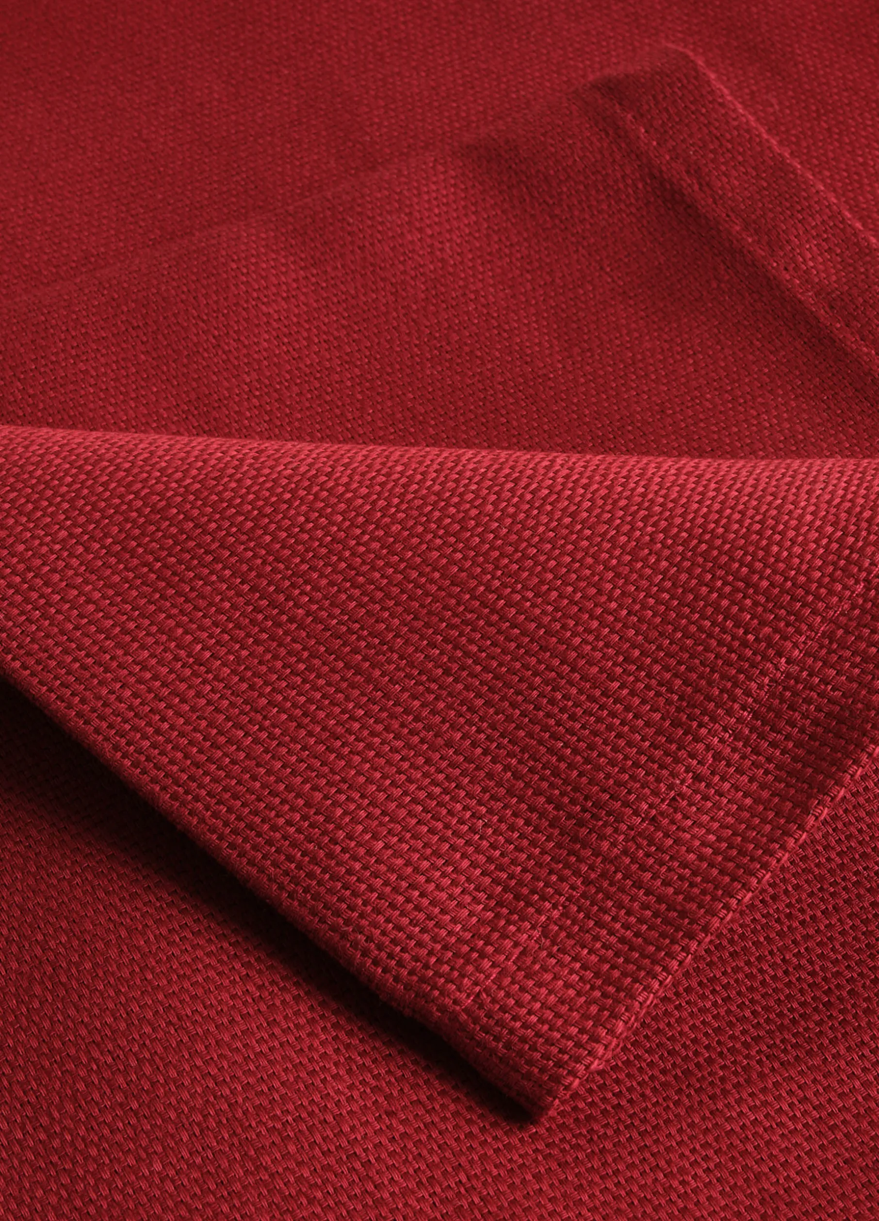 Tovagliolo quadrato rosso intenso, abbinato alla tovaglia nello stesso colore, realizzato intela Panama di puro cotone: il tessuto utilizza fili più spessi e una trama più consistente, che lo rendono resistente e leggero. Dimensioni: 40 x 40 cm.