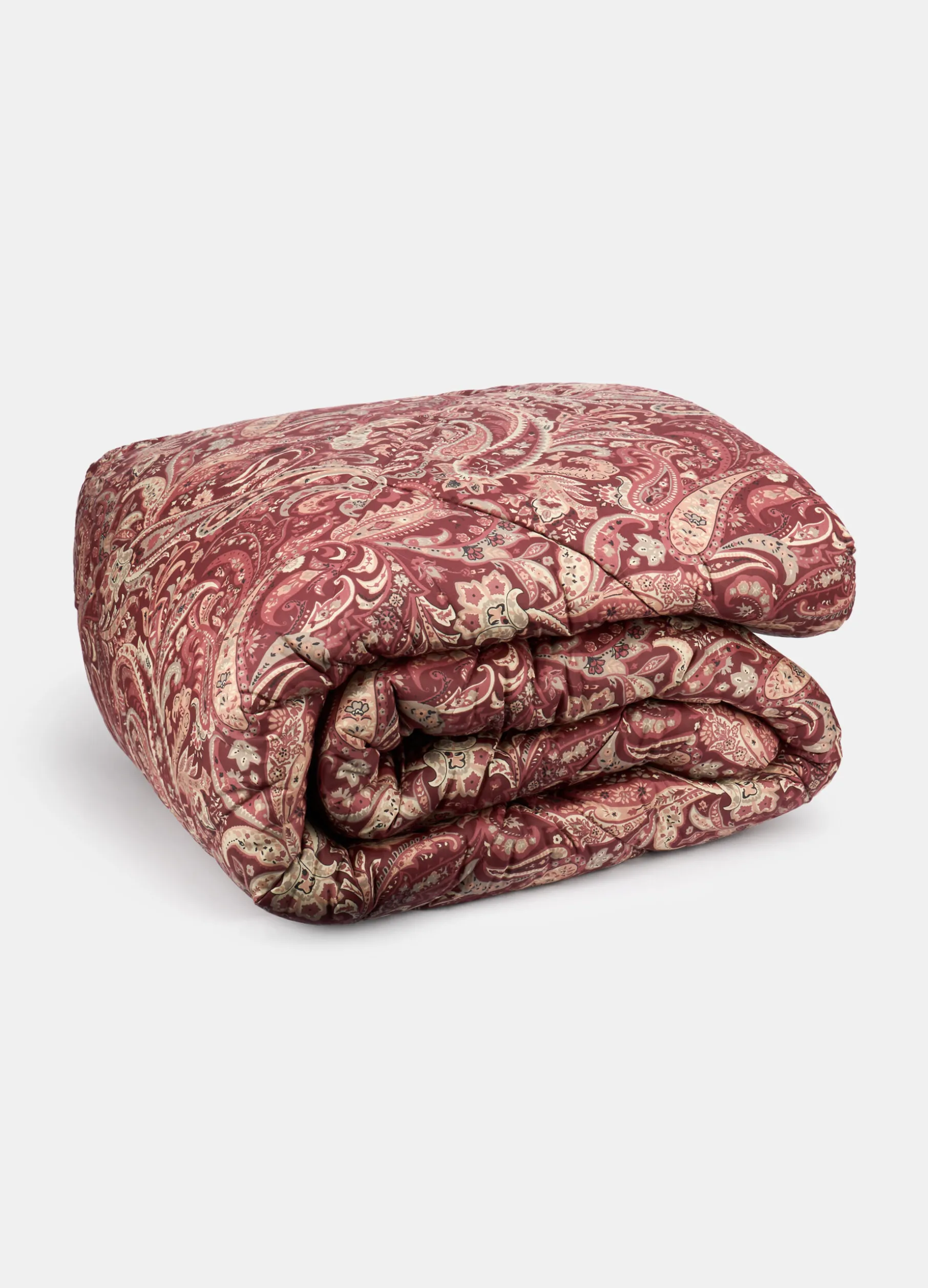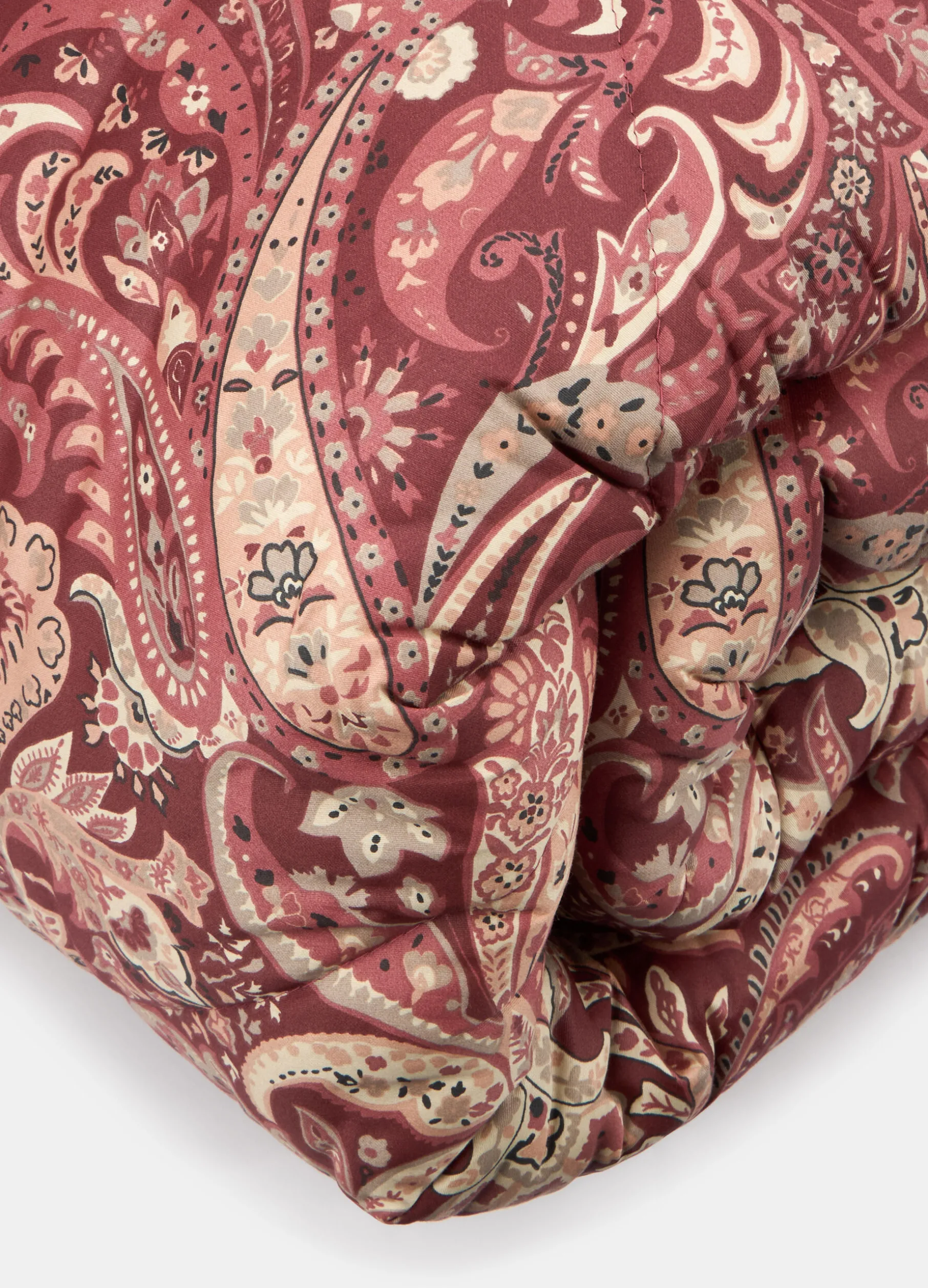 Trapunta grande coordinata in puro raso di cotone: grazie alla particolare lavorazione, il tessuto appare liscio e luminoso, perfetto per garantire il riposo e accentuare il motivo cashmere a contrasto su fondo bordeaux. Dimensioni: 260 x 250 cm.