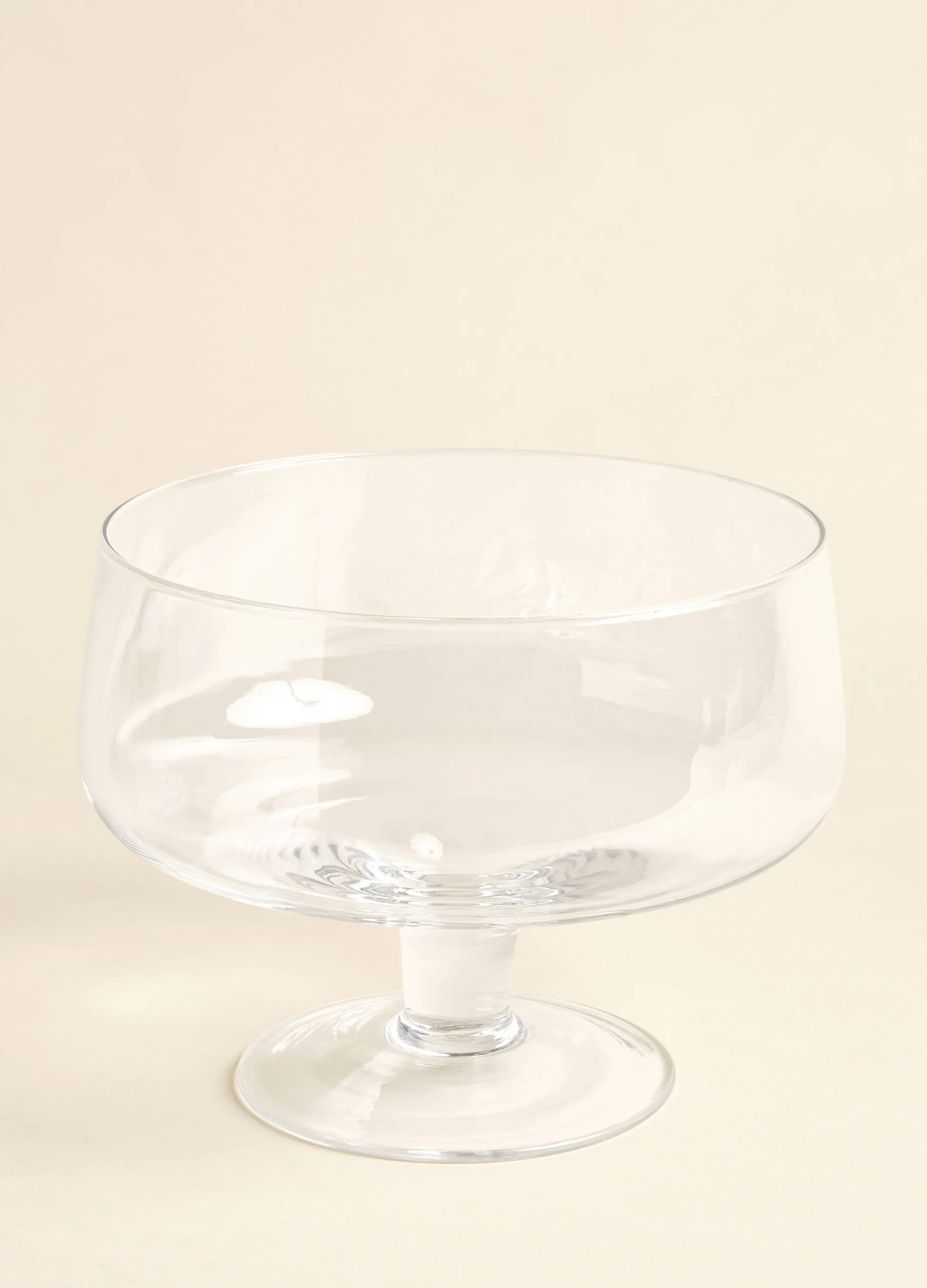 Vaso coppa in vetro con piede. Dimensioni 15 cm.
