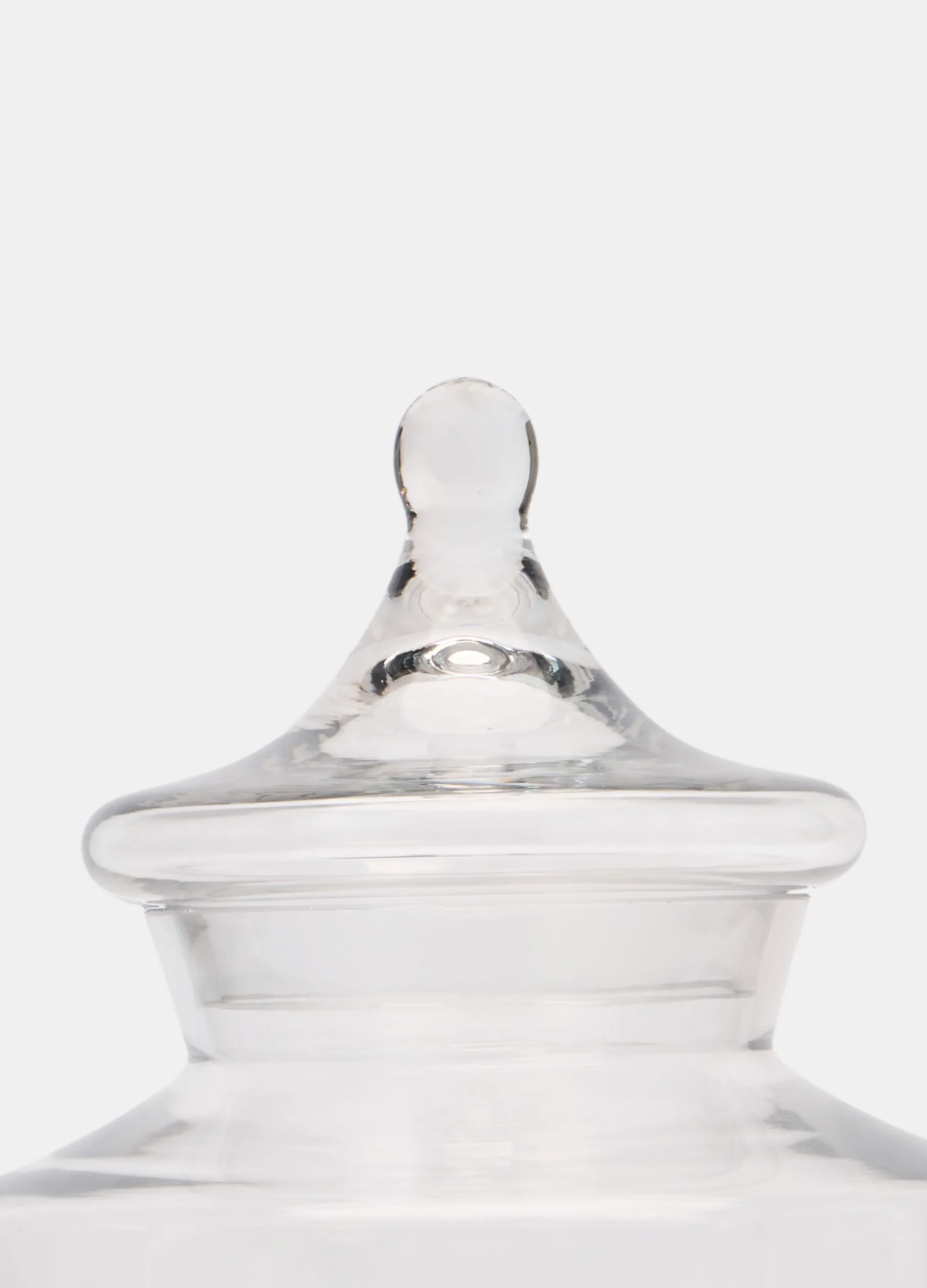 Ampio barattolo panciuto, perfetto per biscotti o caramelle, realizzato in vetro trasparente a forma di coppa, con base rotonda e piede largo, e completo di coperchio. Lo stile elegante e di altri tempi rallegra l’atmosfera domestica con un tocco di magia. Altezza: 31 cm.
