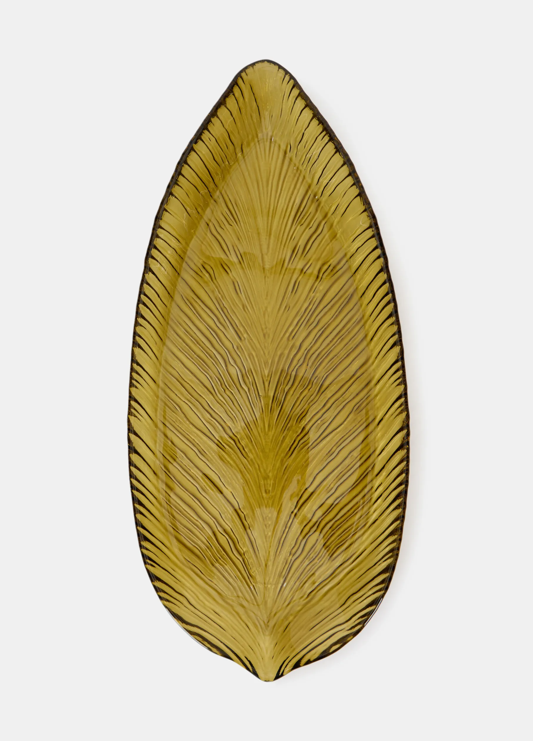 Vassoio allungato a foglia in vetro