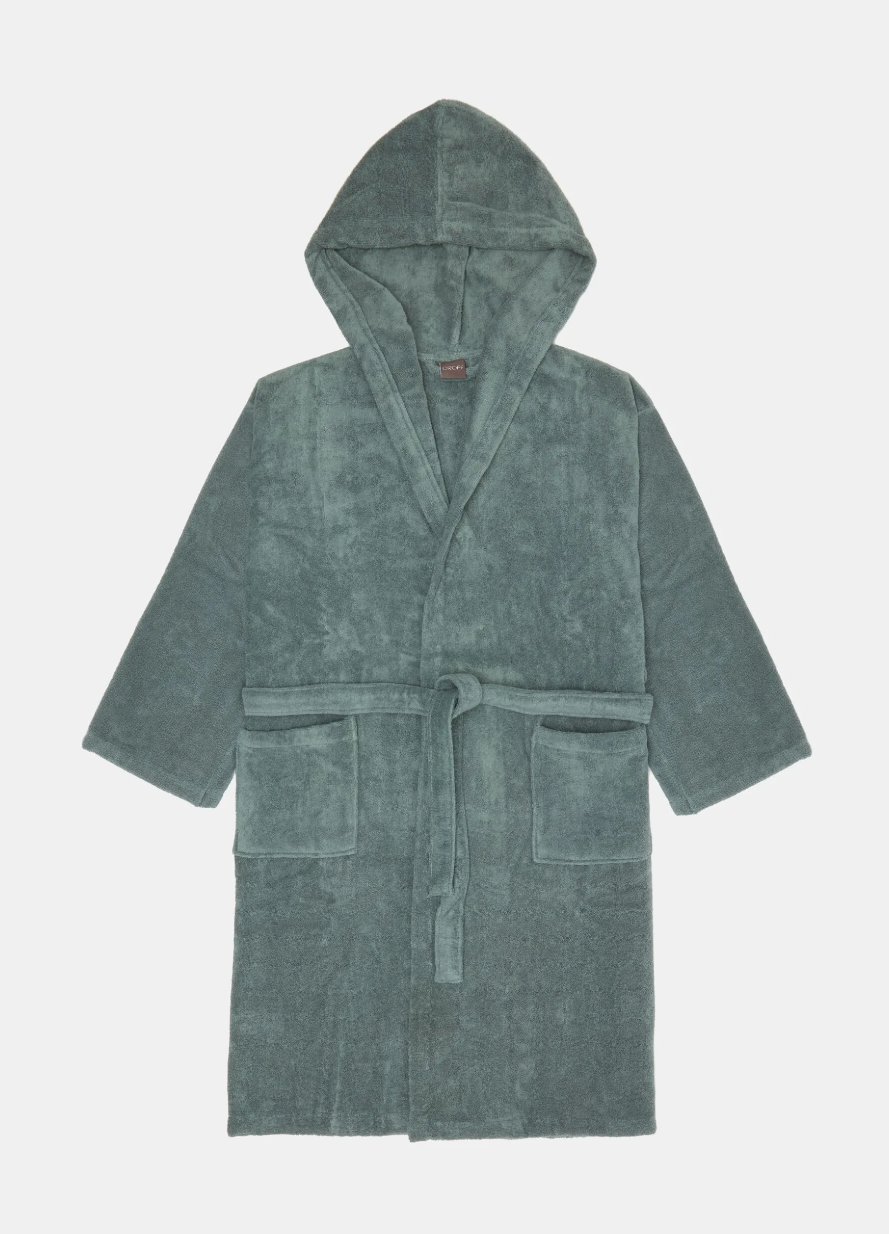 Accappatoio fusciacca in vita su tono. Tasche applicate sul fronte e cappuccio. Tinta unita. Puro cotone. Questo articolo fa parte della linea “Premium Quality”.