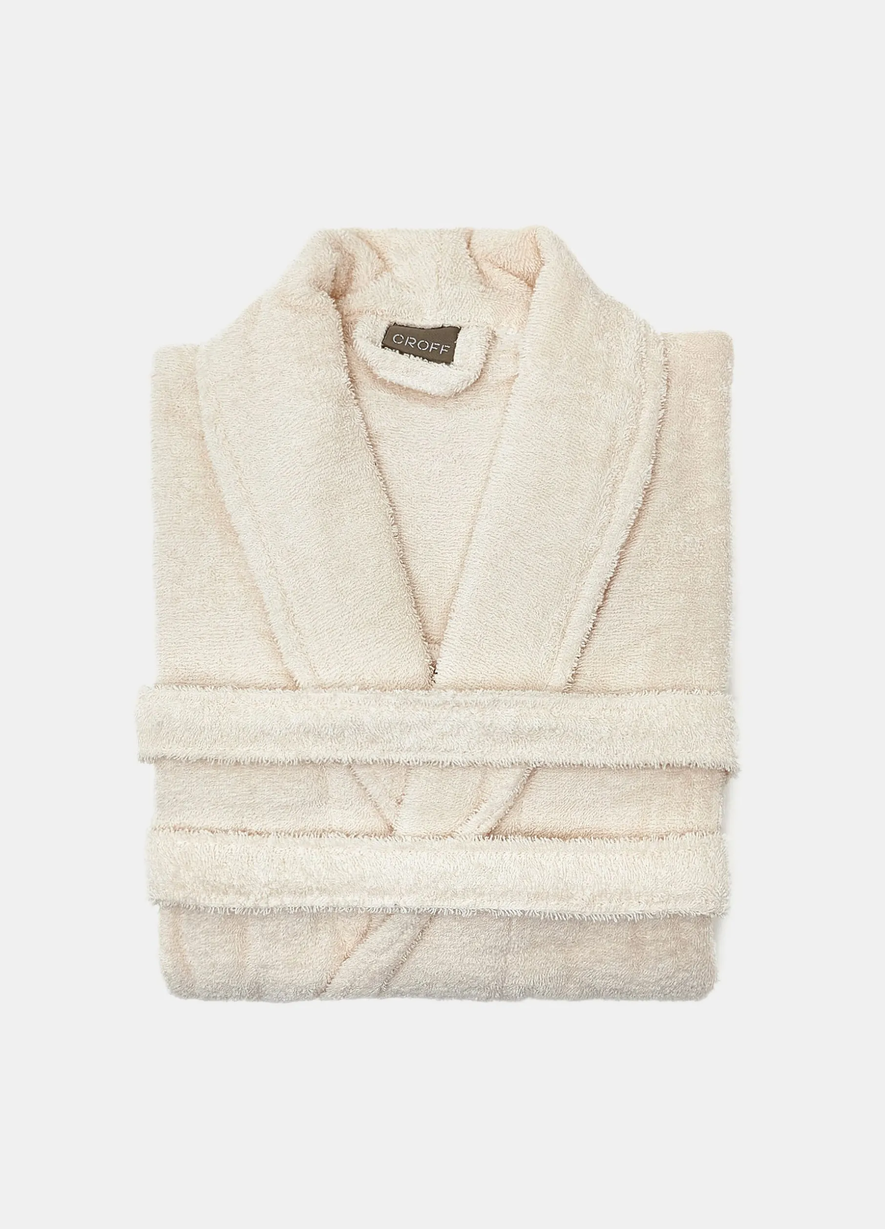 Accappatoio in puro cotone. Rever e fusciacca tono su tono. Tinta unita. Due tasche sul fronte. Taglio XXL.