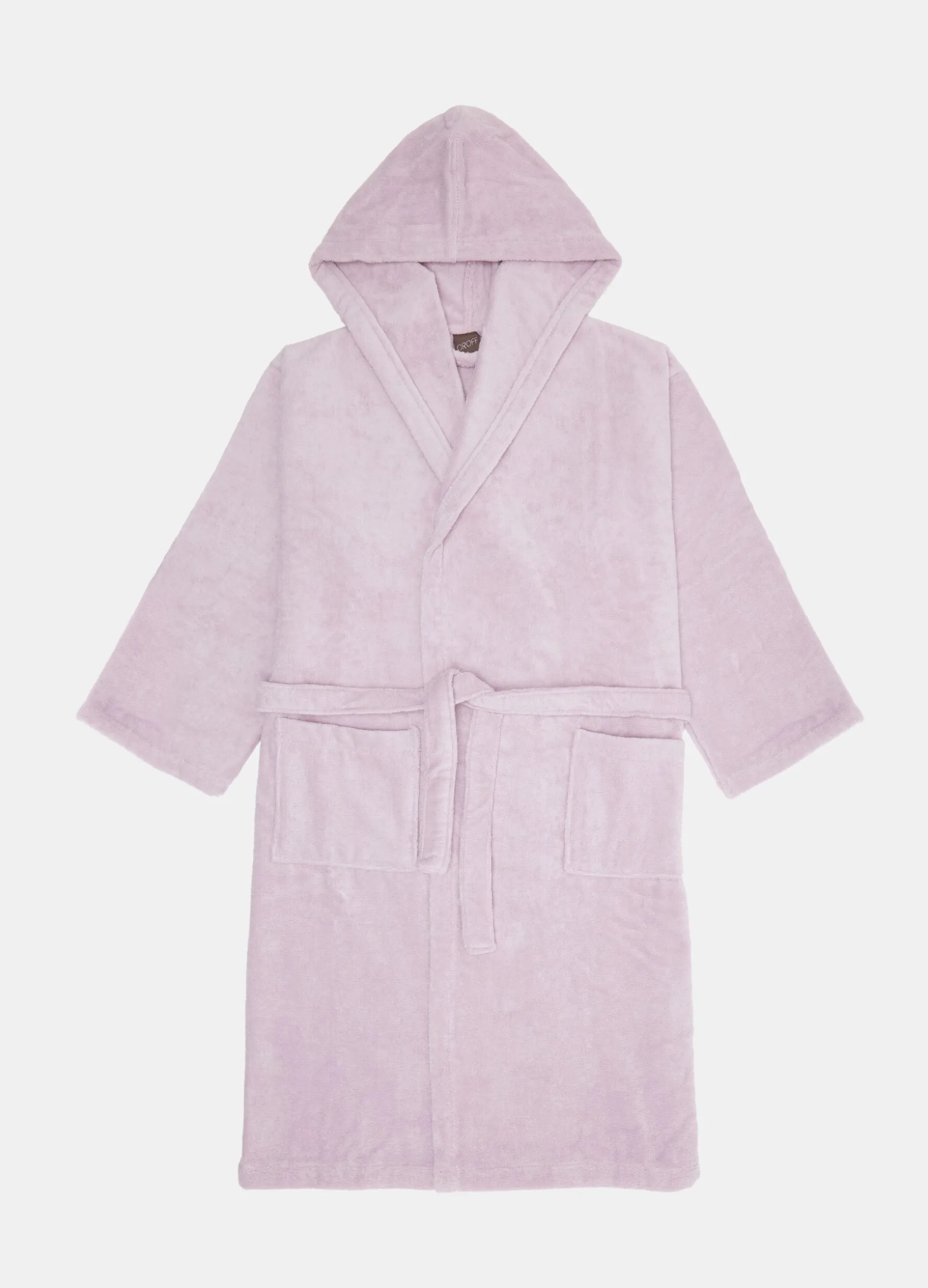 Accappatoio fusciacca in vita su tono. Tasche applicate sul fronte e cappuccio. Tinta unita. Puro cotone. Questo articolo fa parte della linea “Premium Quality”.