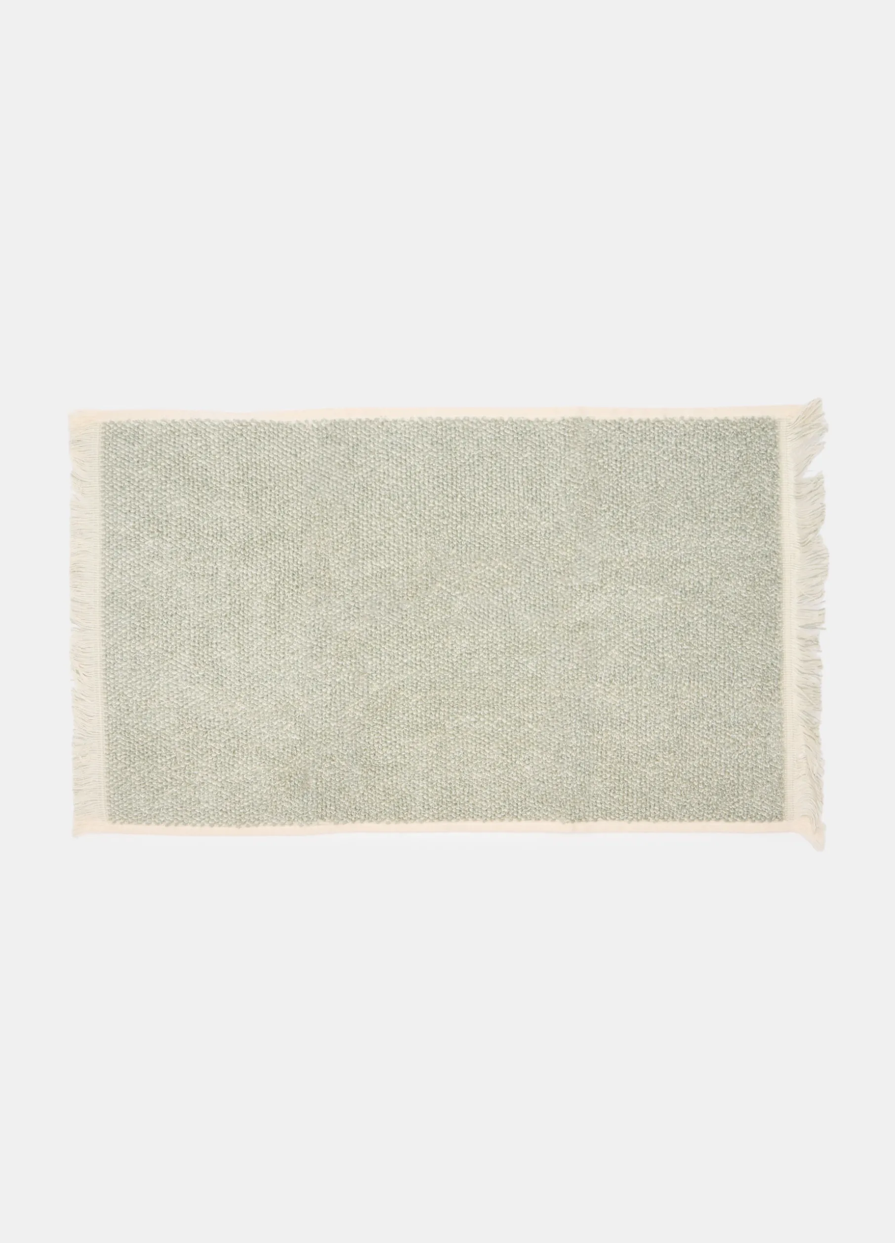 Asciugamano rettangolare per viso e mani realizzato in misto di cotone e viscosa di bambù: l’unione delle due fibre naturali crea un tessuto leggero e resistente, dalle proprietà antibatteriche, con una colorazione verde mélange. Completato da frange sui lati corti. Dimensioni: 90 x 50 cm.