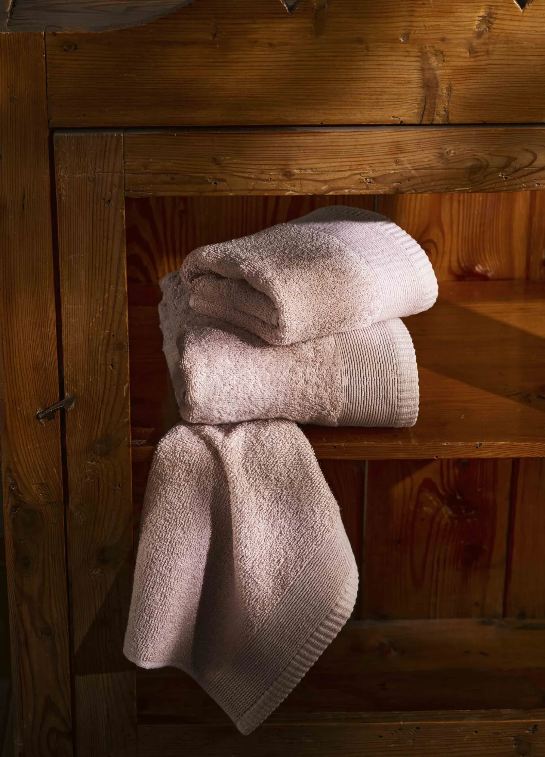 Asciugamano in puro cotone 520 gsm con lavorazione a righe. Tinta unita. Dimensioni 100×60 cm.