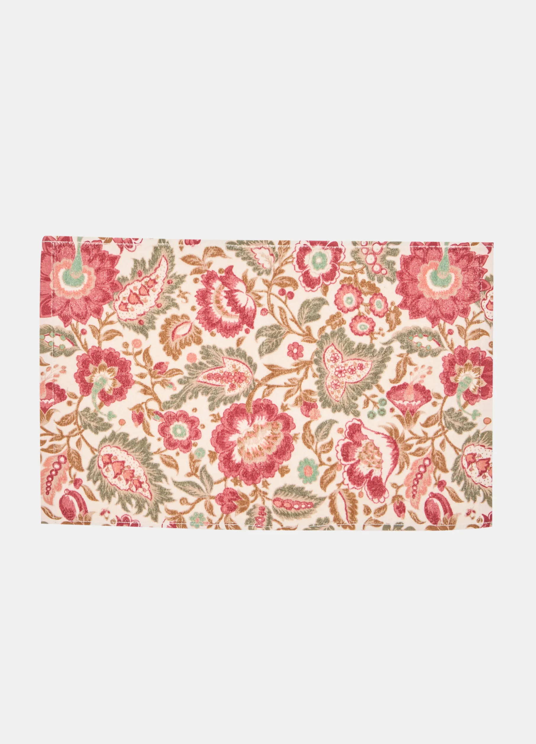Asciugamano piccolo per ospiti, realizzato in spugna di puro cotone leggera e avvolgente, per assorbire l’acqua senza irritare la pelle. Il tessuto è arricchito dalla stampa con motivo floreale rosso. Dimensioni: 50 x 30 cm.