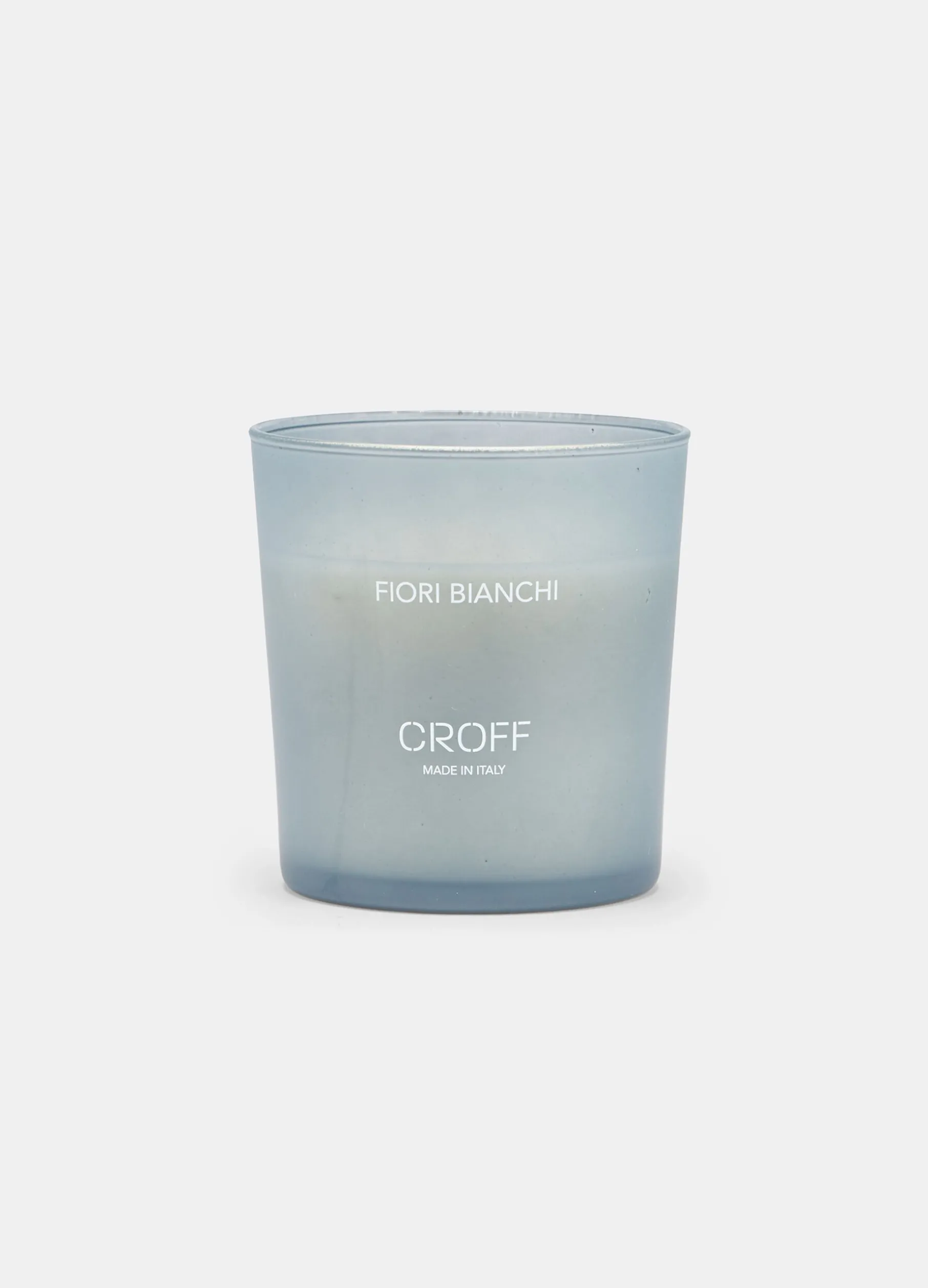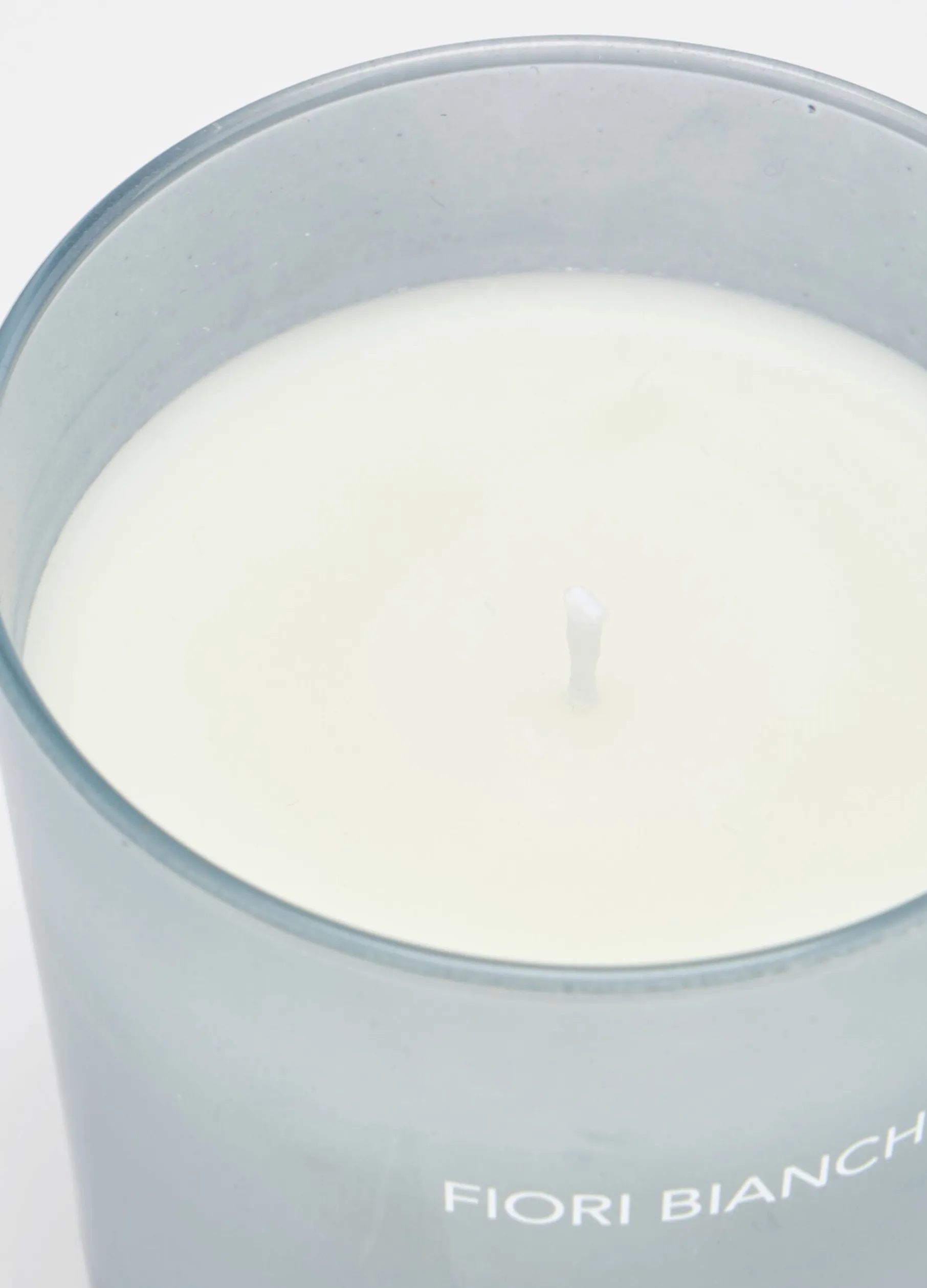 Candela profumata con vaso aroma fiori bianchi. Made in Italy.
