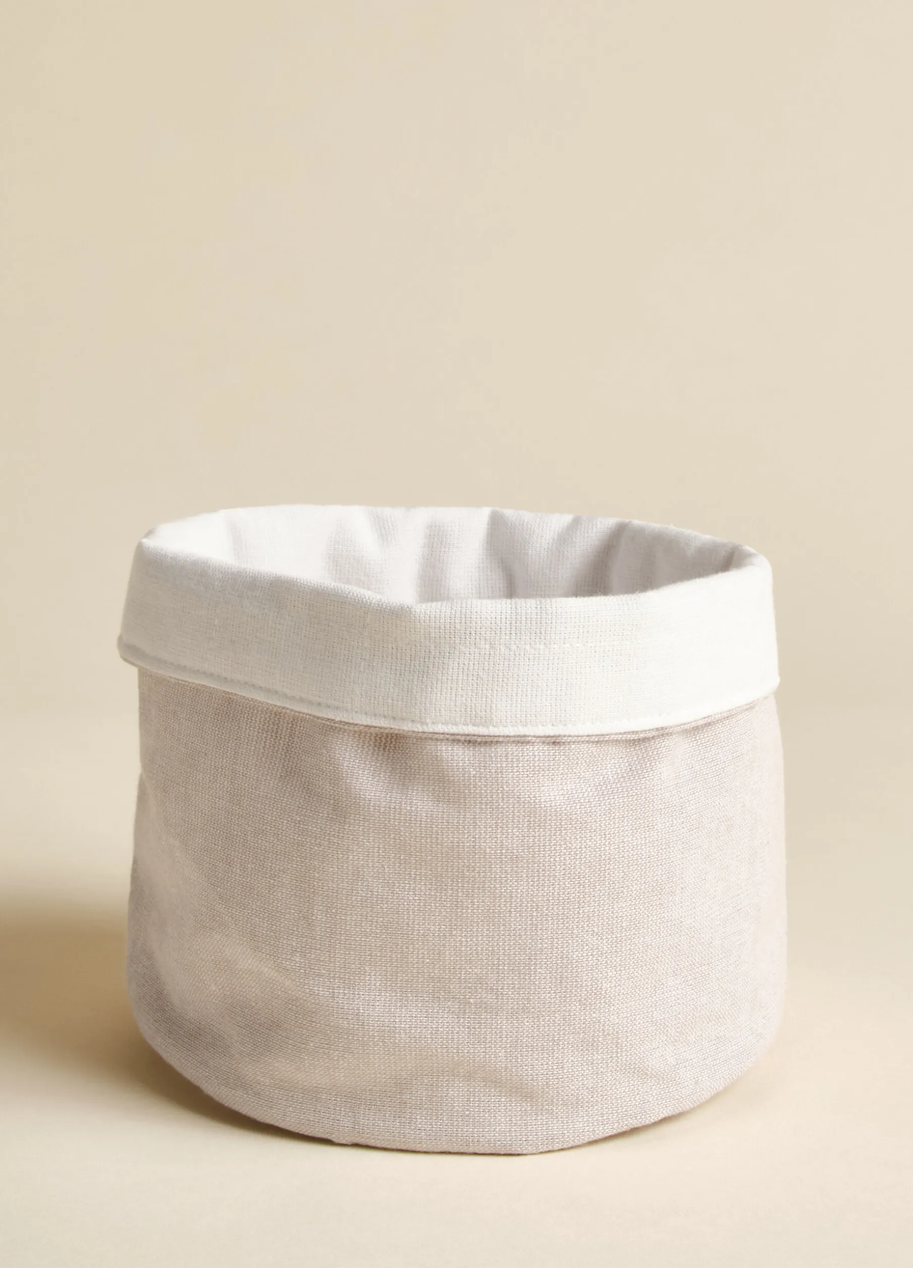 Cestino morbido per pane in puro cotone, versatile e resistente, perfetto per l’utilizzo quotidiano. L’esterno beige mélange contrasta con l’interno bianco.