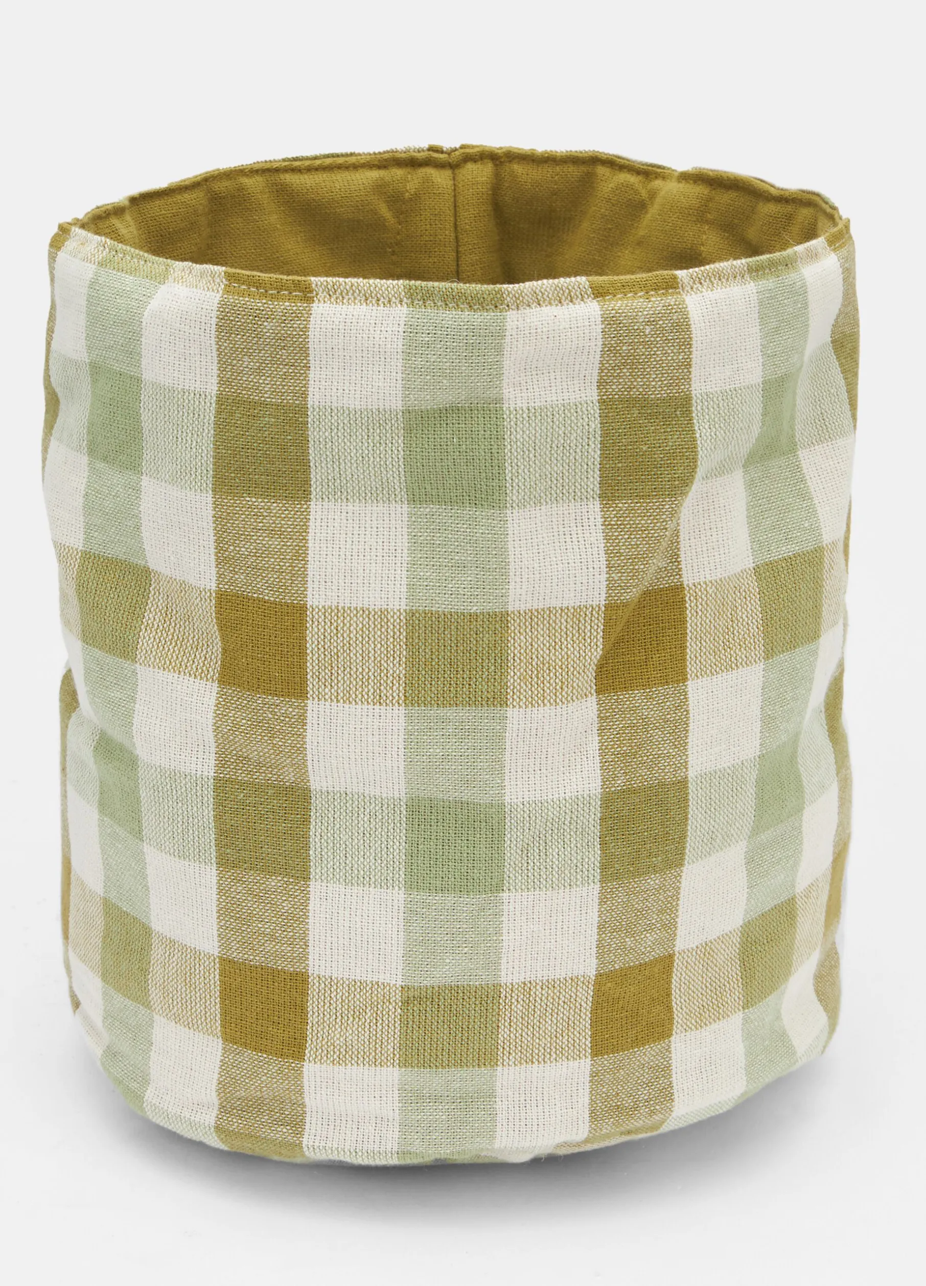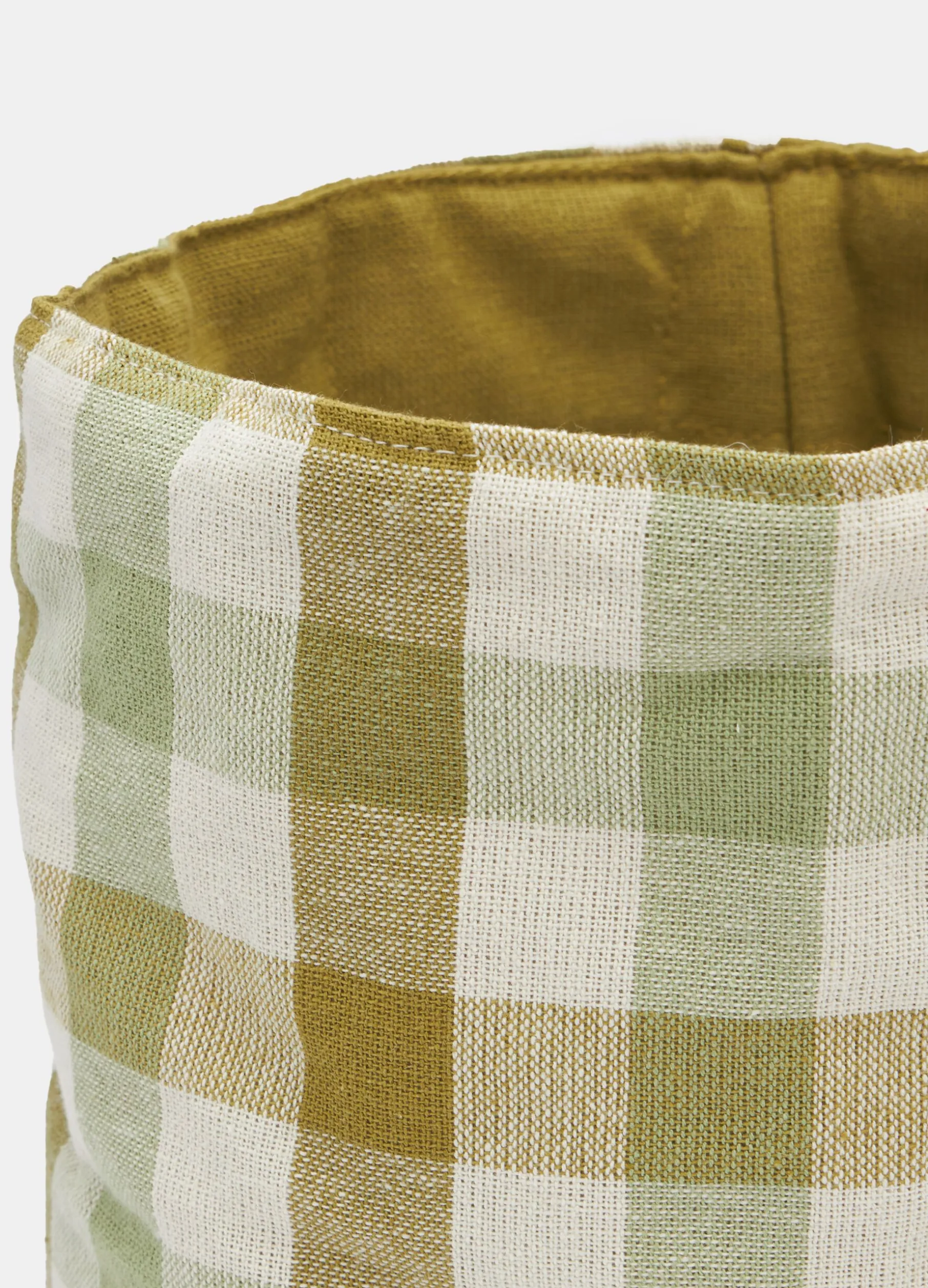 Cestino cilindrico in cotone biologico con motivo a quadri. Diametro 20cm.