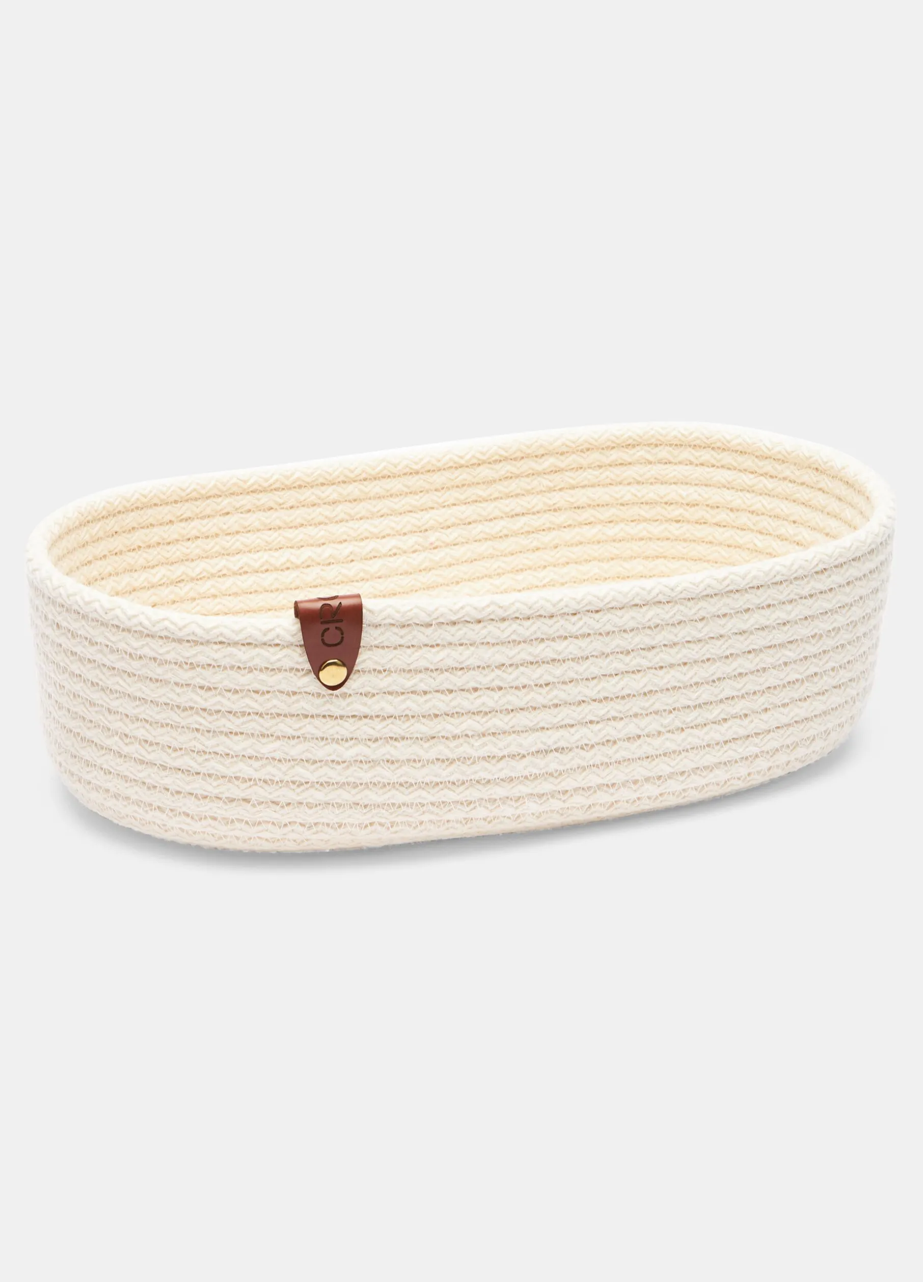Cesto lavorato in misto cotone. Dimensioni 16x29x9cm.