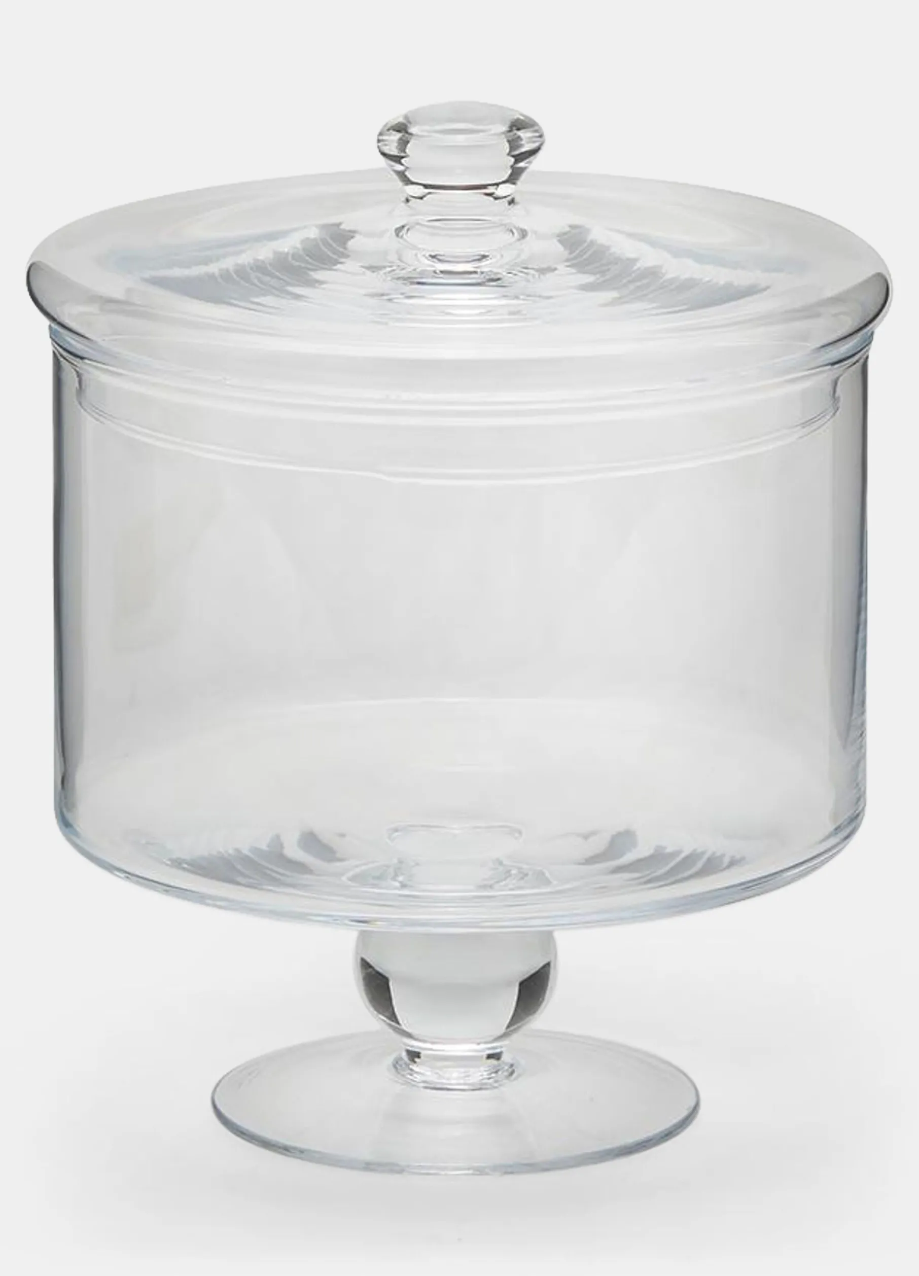 Contenitore con piede cilindrico in vetro. Dimensioni h19 cm , diametro 15 cm.