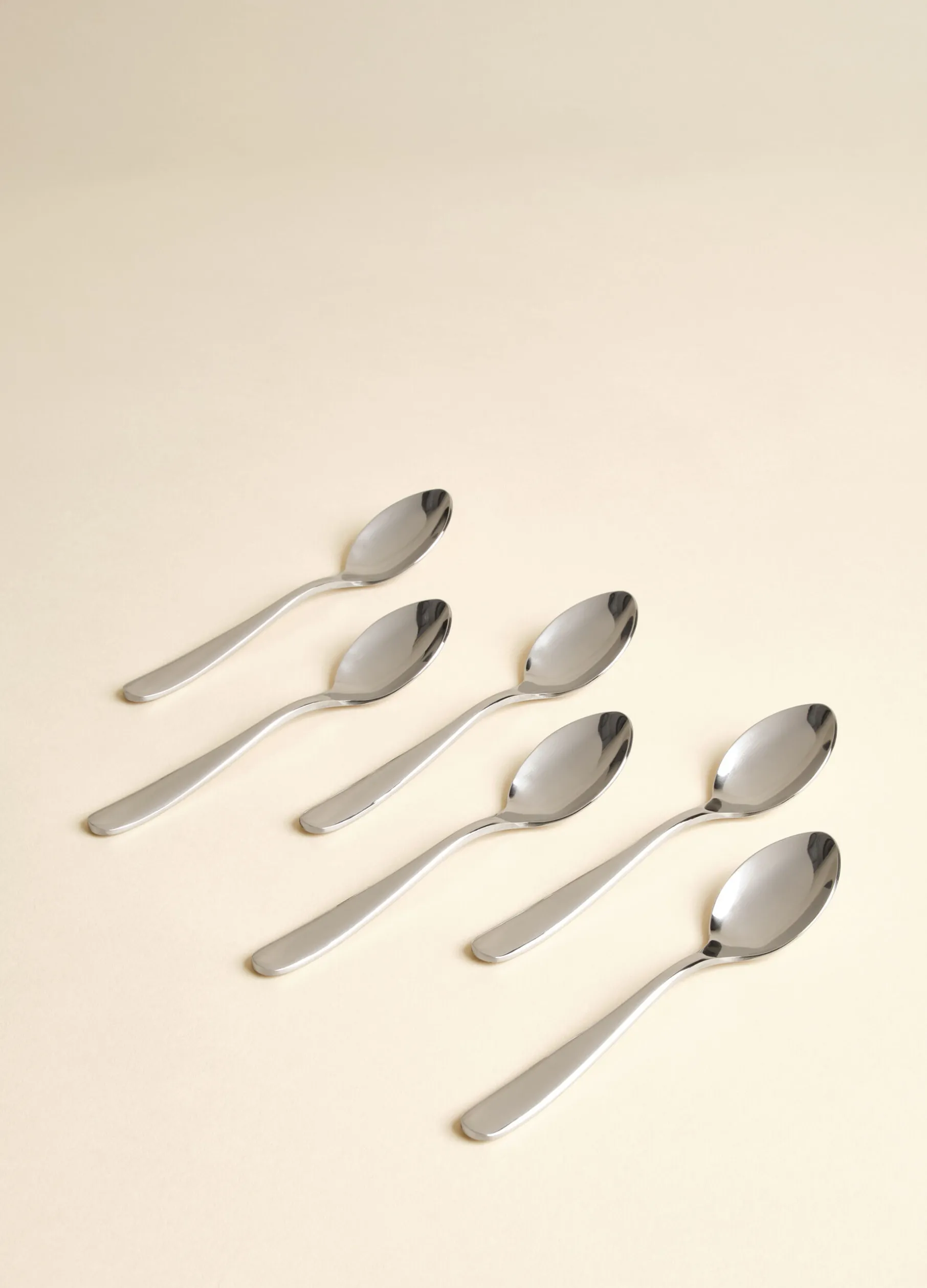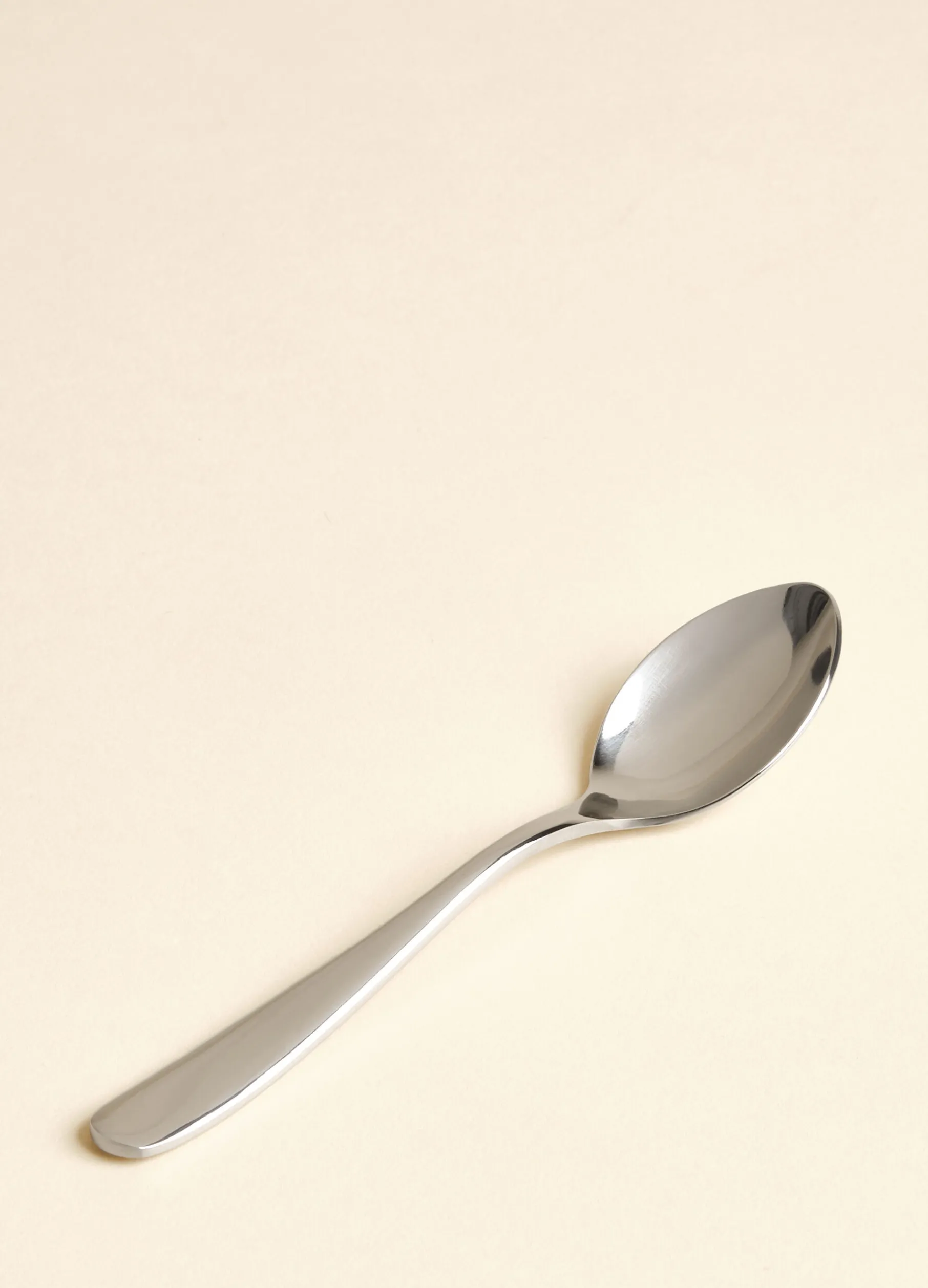 Cucchiaino da caffè dalle linee semplici ed essenziali, realizzato in acciaio lucido.