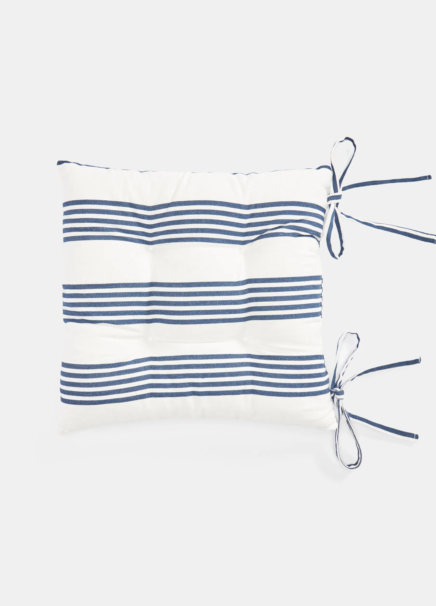 Cuscino coprisedia a righe in cotone. Due laccetti di fissaggio. Dimensioni 40x40cm.