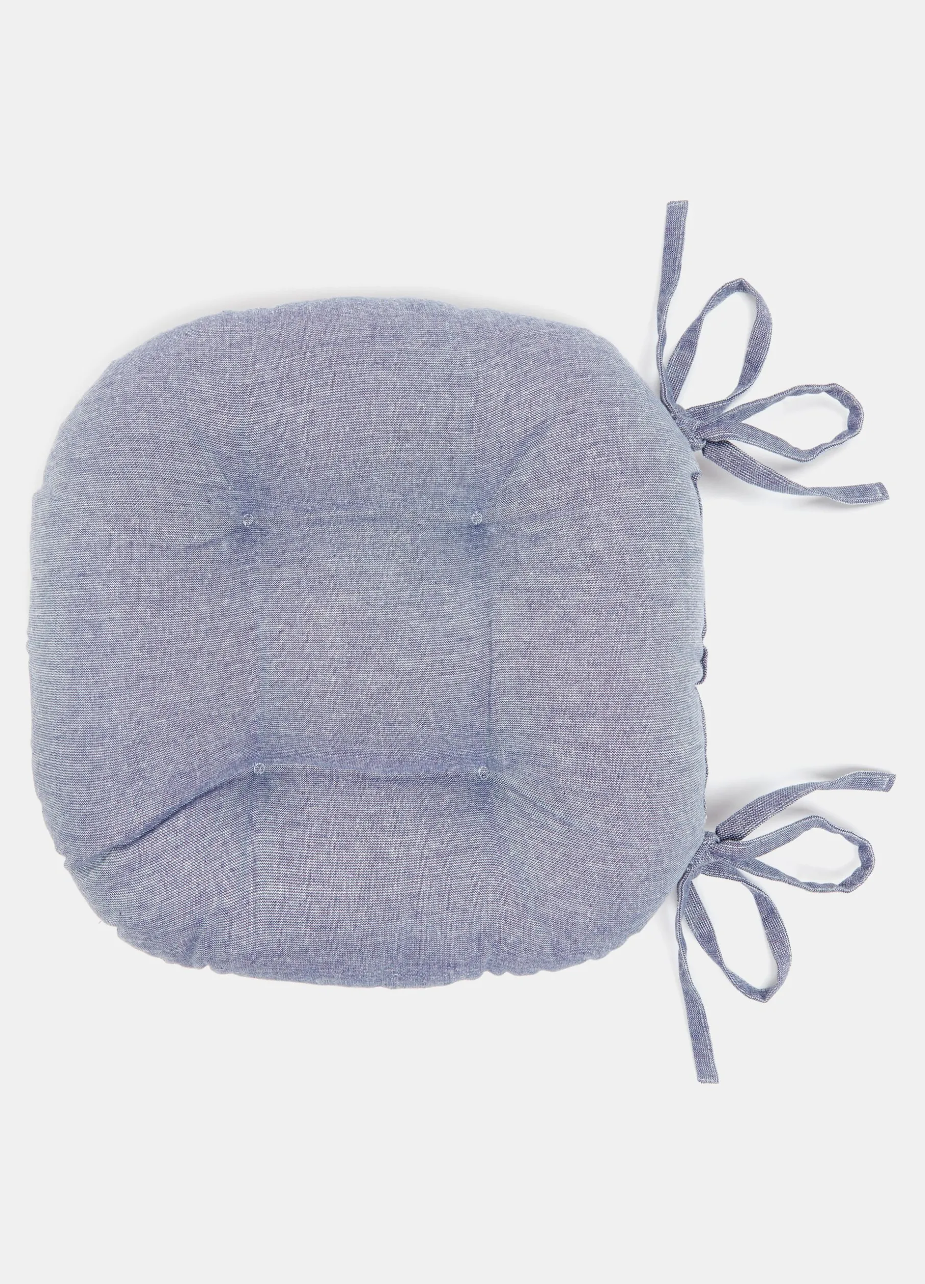 Cuscino coprisedia 40×40 cm rotondo in tinta unita mélange. Due lacci di fissaggio.