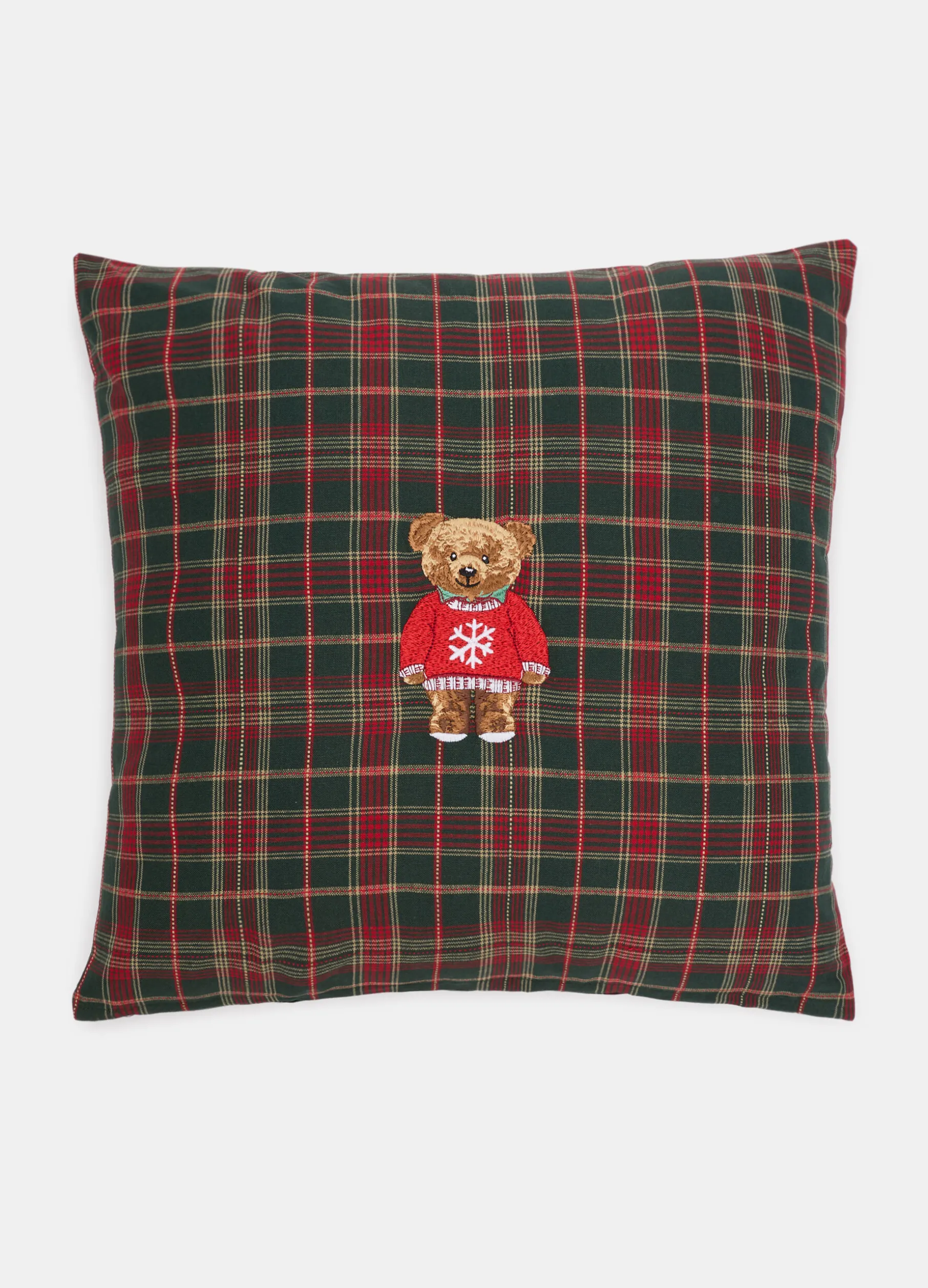 Cuscino quadrato in cotone tartan con Teddy Bear