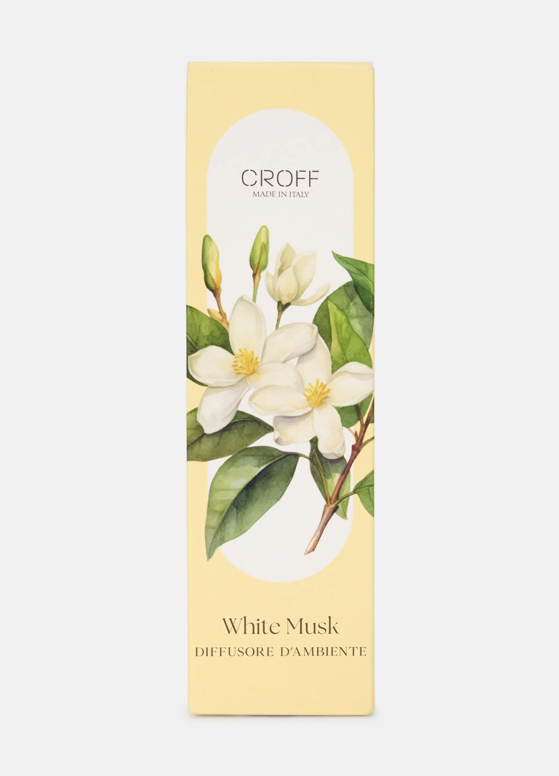 Pura e intensa, la fragranza del muschio bianco sprigiona dall’immancabile diffusore per ambienti White Musk, realizzato in Italia e composto da flacone in vetro e bastoncini. Misure: 100 mL.