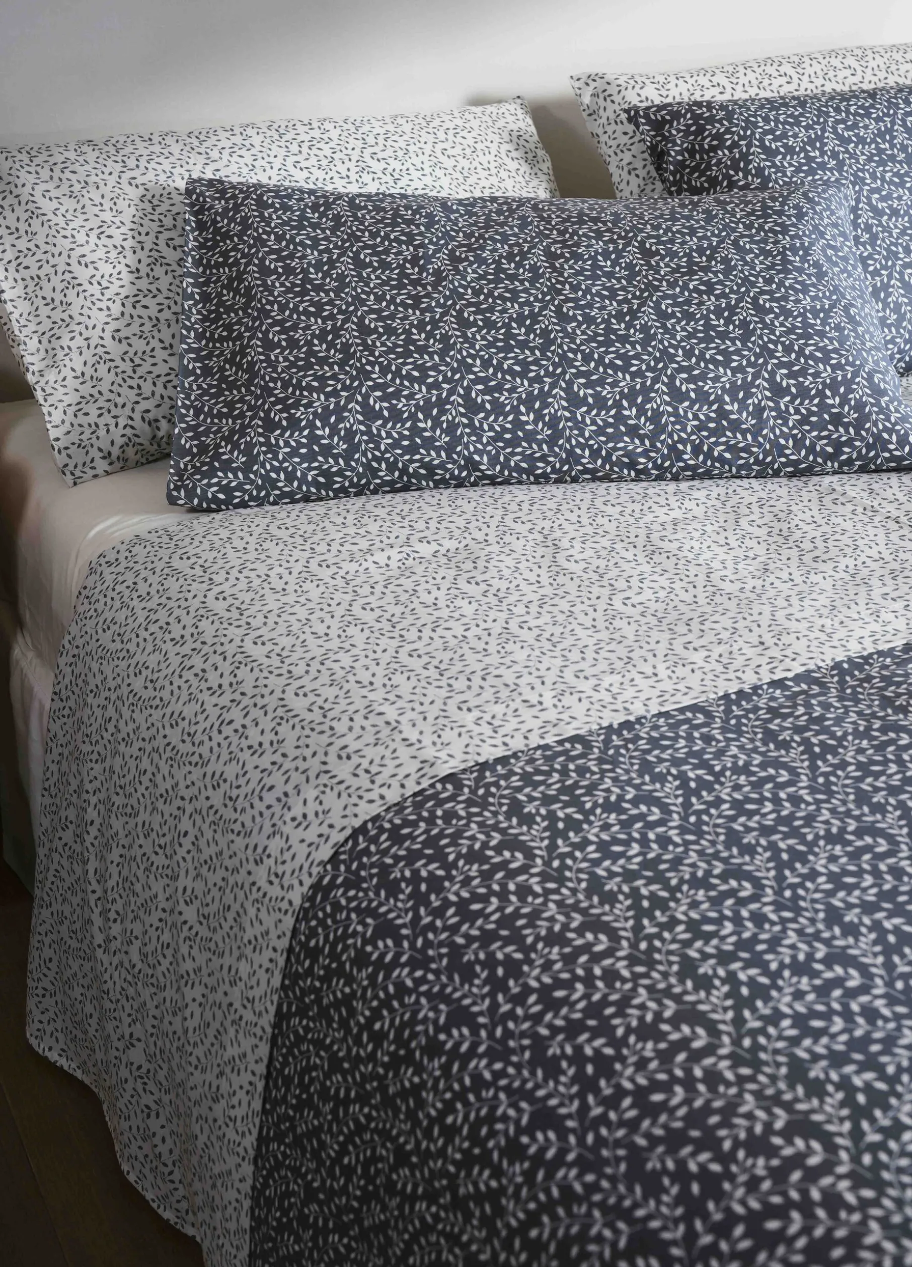 Federa in puro cotone con stampa all over a motivo foliage.