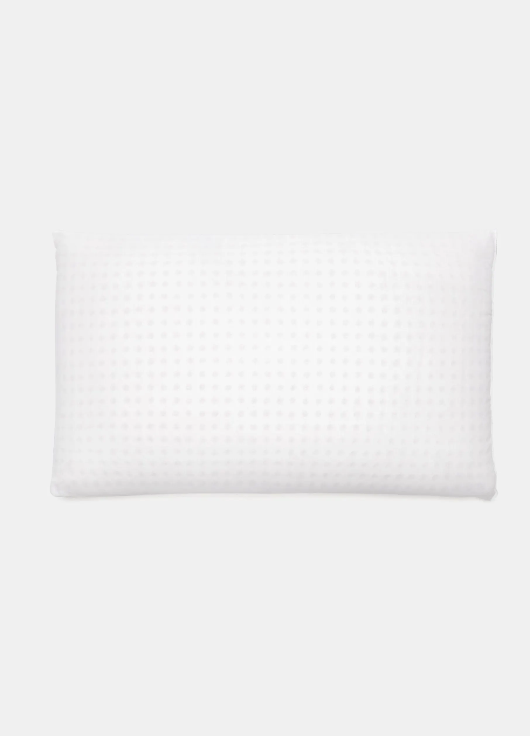 Guanciale in puro lattice con sagoma a saponetta ad alto sostegno. Fodera in puro cotone.