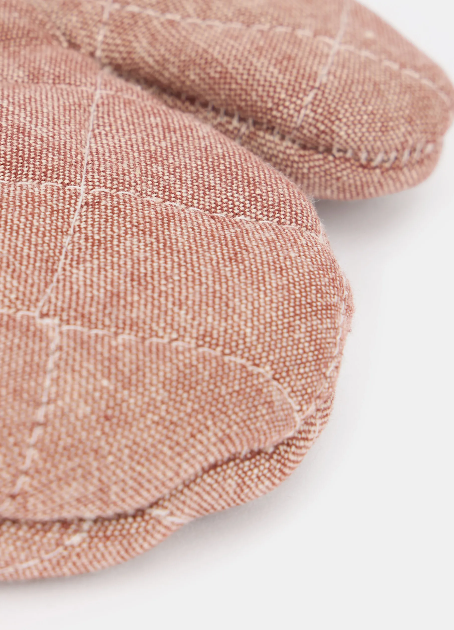 Guanto da forno rosso mattone in tinta unita realizzato in puro cotone con un caratteristico effetto fiammato tipico del lino. È completato da una leggerissima imbottitura che lo rende più funzionale ed efficace all’uso. Dimensioni: 27 x 17 cm.