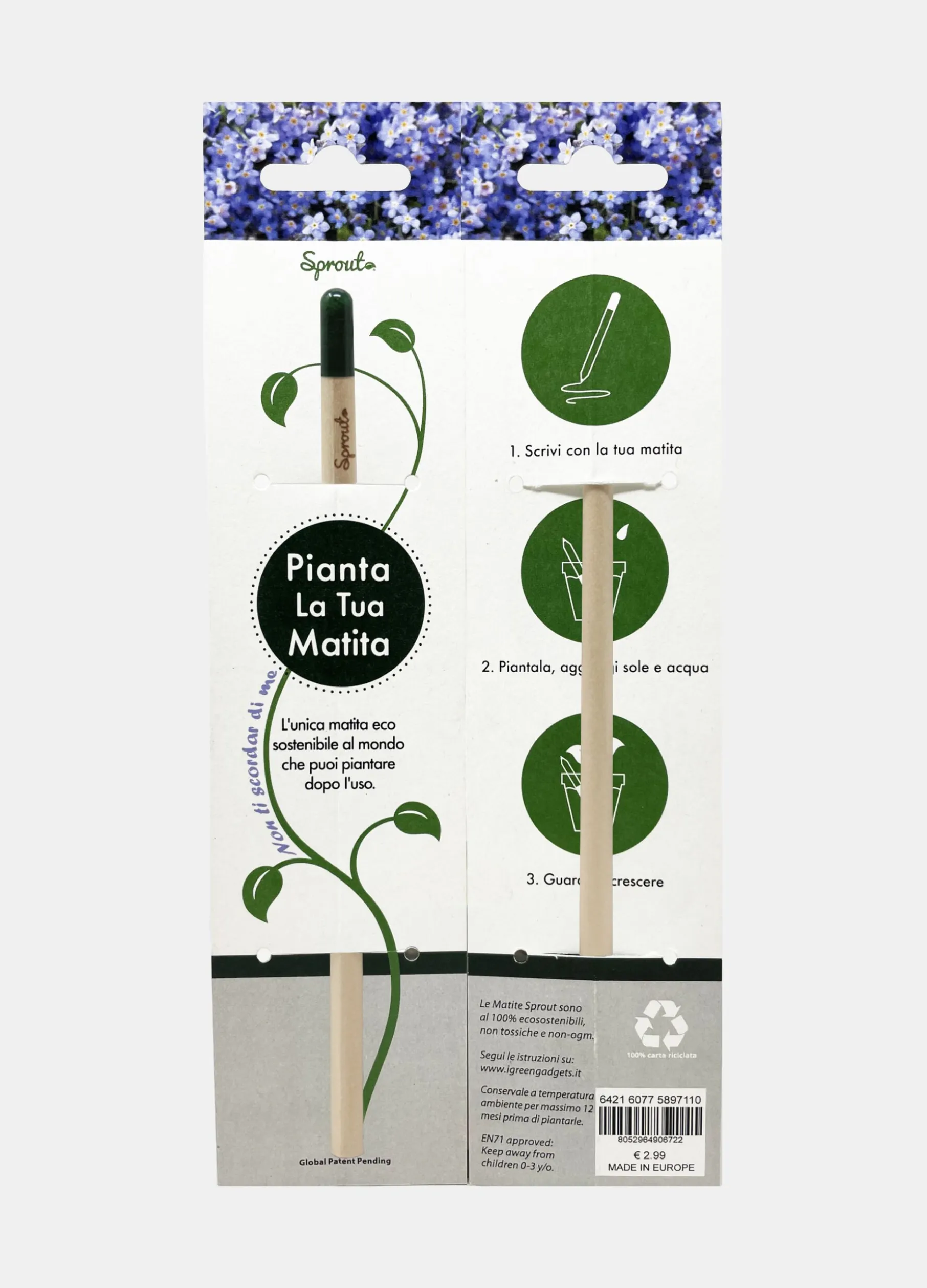 Matita ecosostenibile con semi di Non ti scordar di me. Dimensioni 20x1x6 cm. Made in Italy.