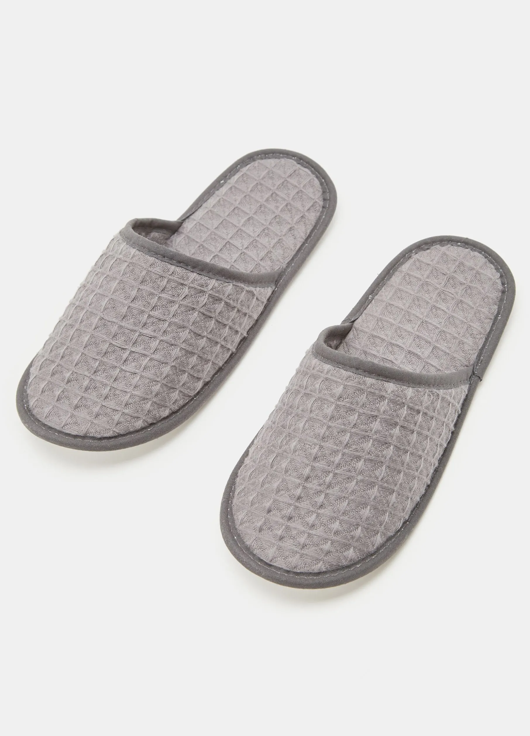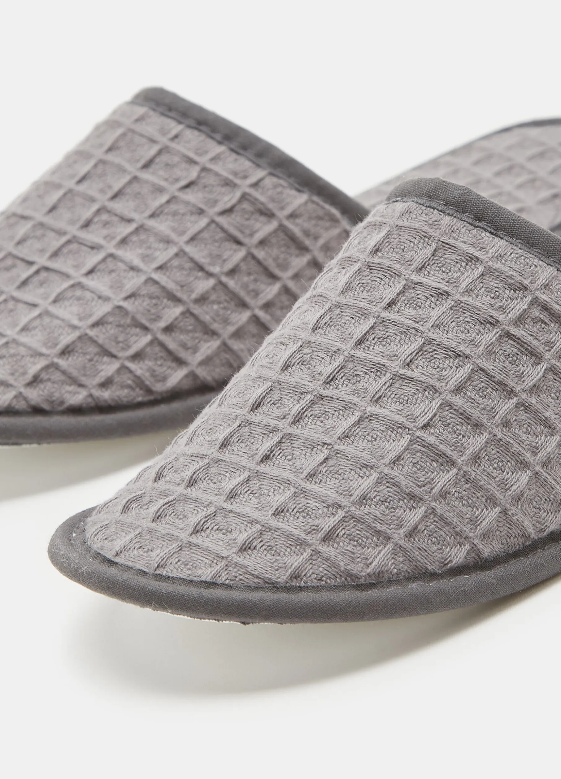 Pantofole con tomaia in puro cotone con trama a nido d’ape. S/M. Made in Portogallo.