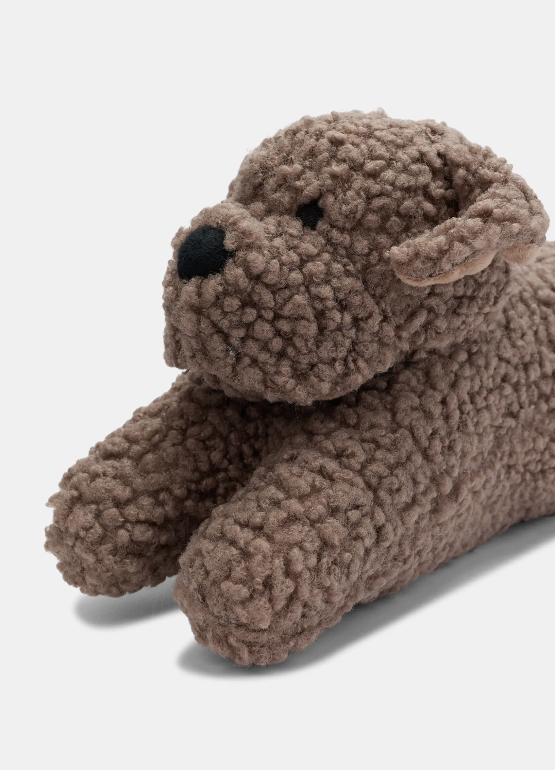Pratico paraspifferi da posizionare di fronte a porte e finestre per mantenere caldi e accoglienti gli spazi domestici. A forma di cagnolino, è rivestito in tessuto morbido e vaporoso effetto peluche. Dimensioni: 15 x 90 x 20 cm.